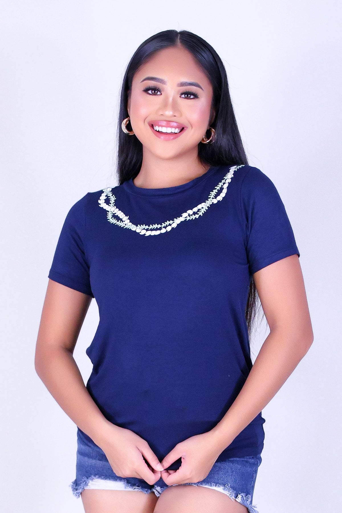 PIKAKE PAKALANA TWIST TEE is available in color NAVY and in size SMALL, MED, LARGE, XL.