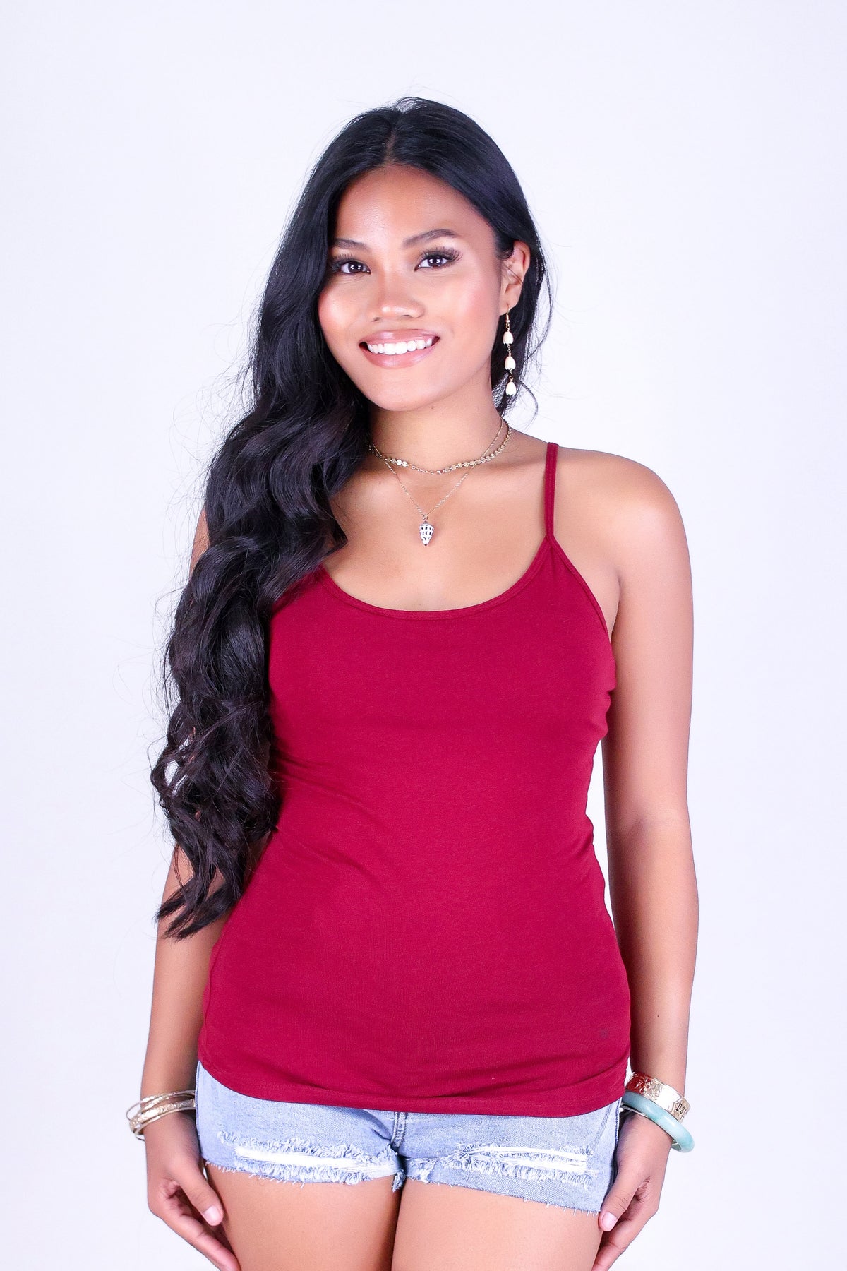 ALL OF A SUDDEN CAMI is available in color BURGUNDY and in size SMALL, MED, LARGE.