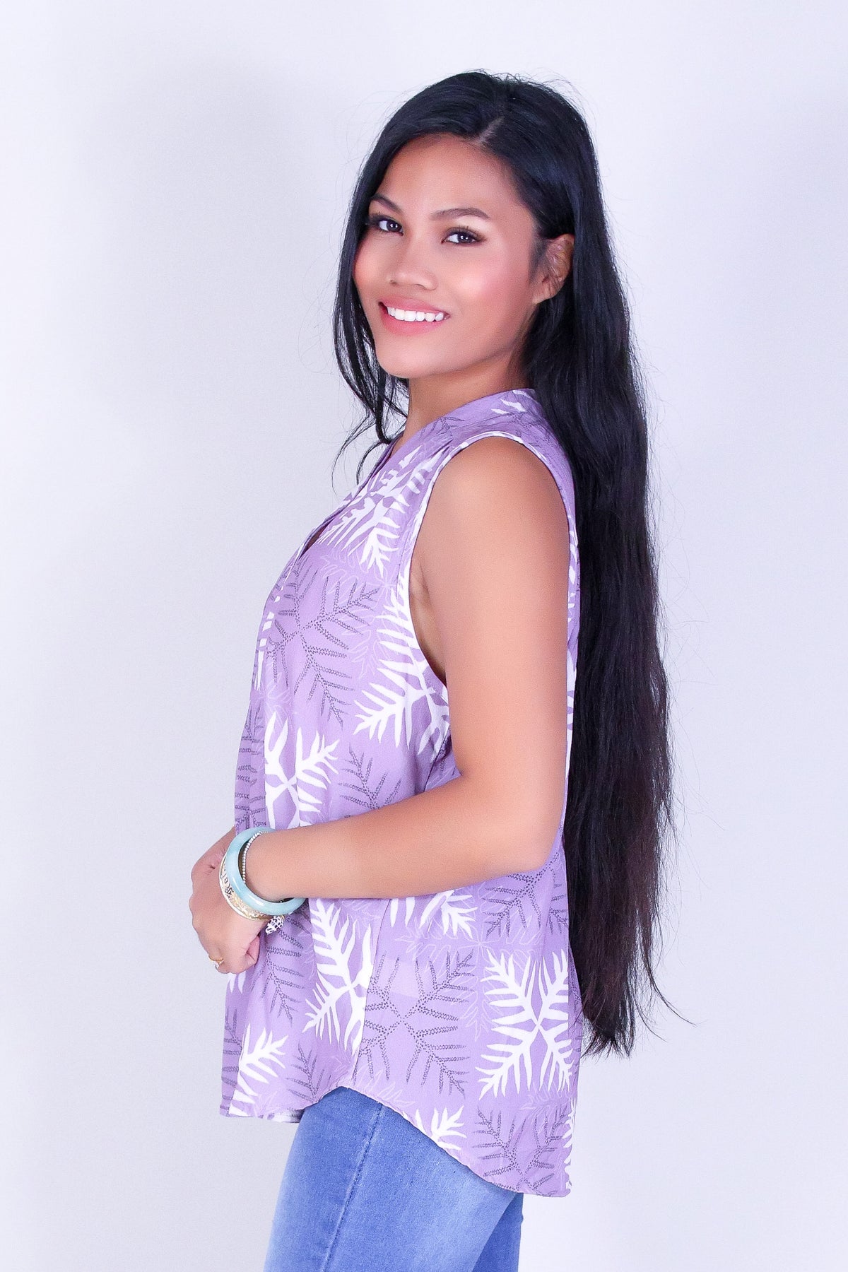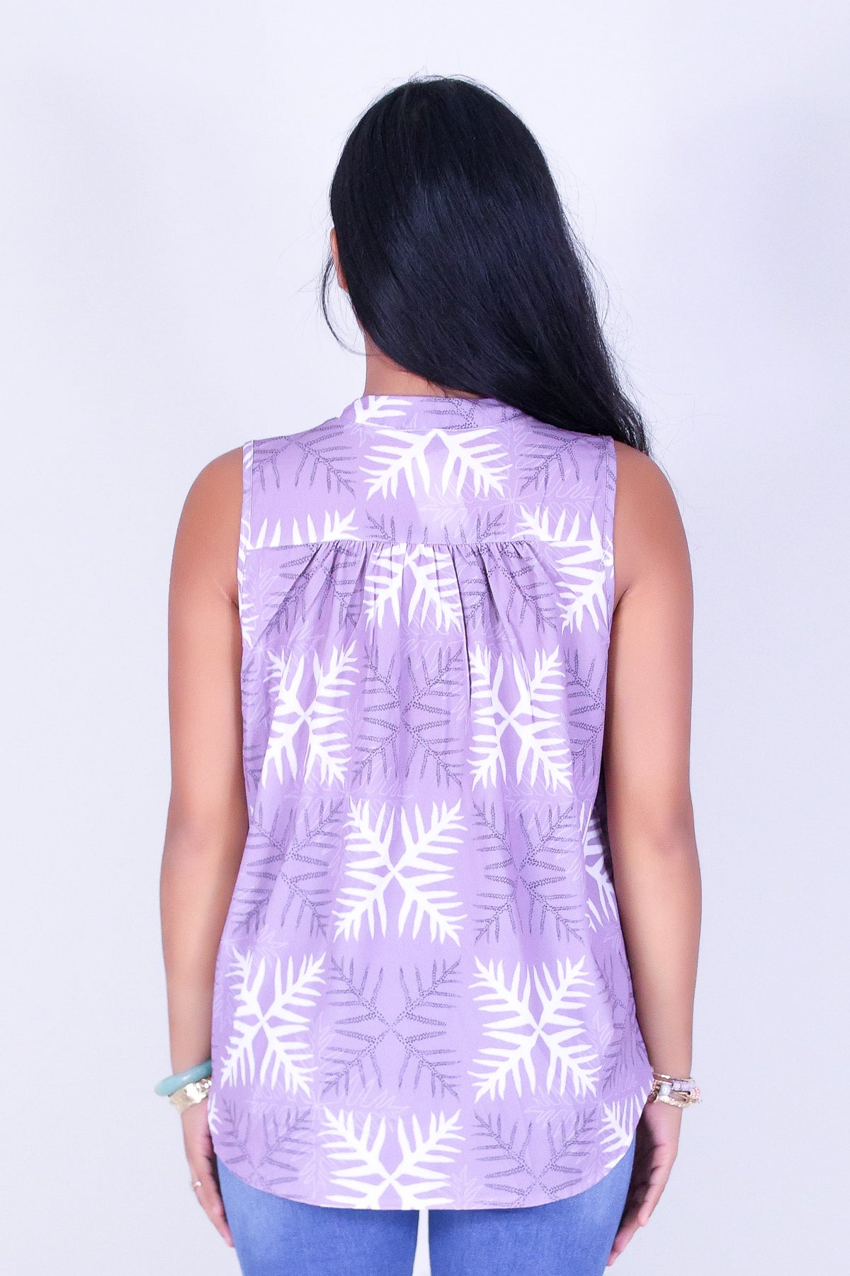 LAUAE QUILT TANK BLOUSE is available in color LAVENDER and in size SMALL, MED, LARGE.