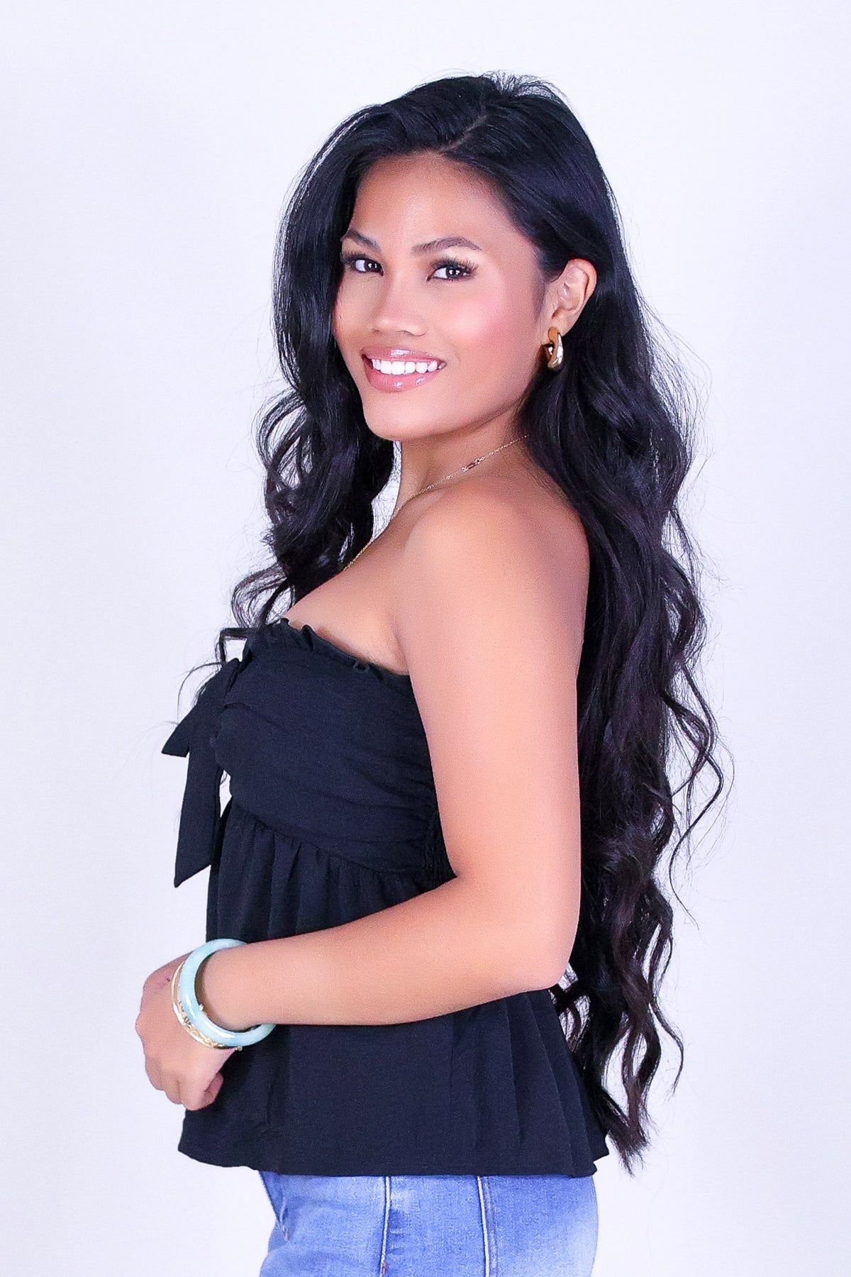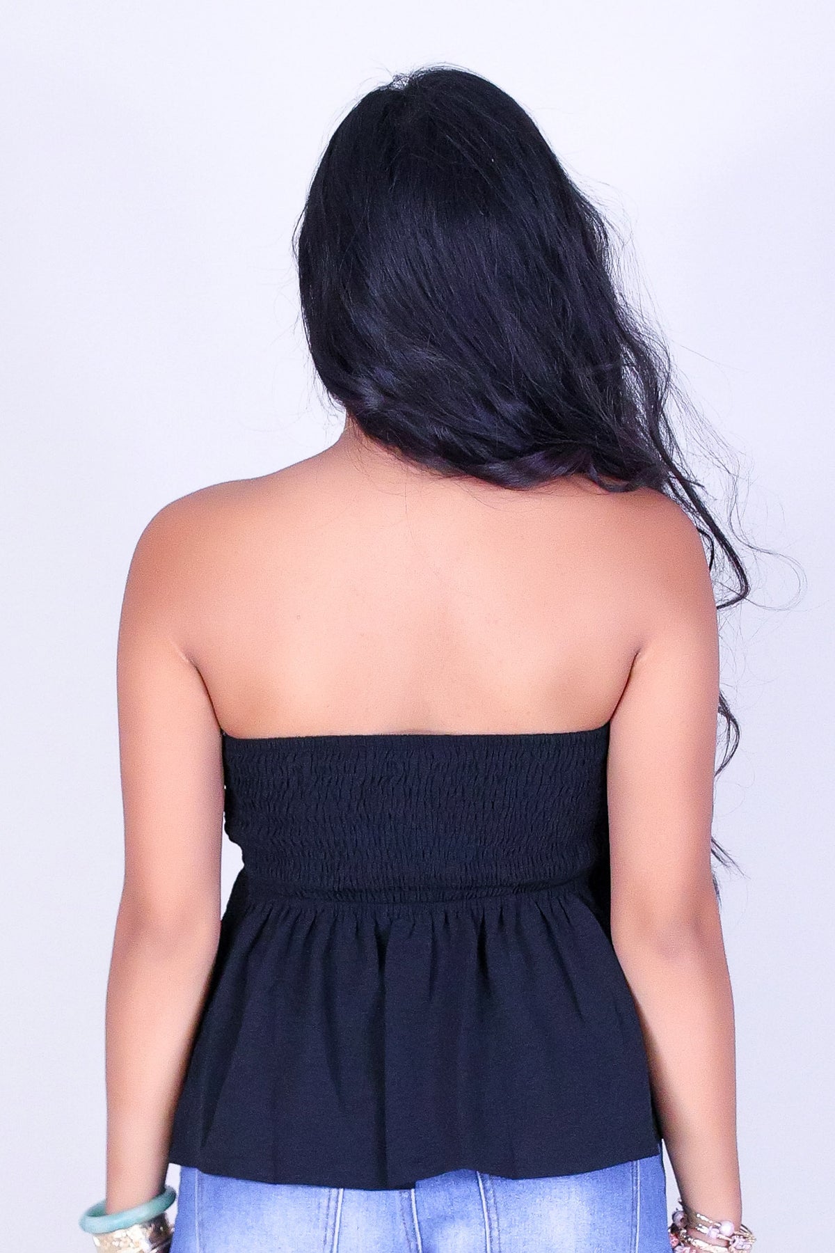 RELAXED BREEZE TUBE TOP is available in color BLACK and in size SMALL, MED, LARGE.