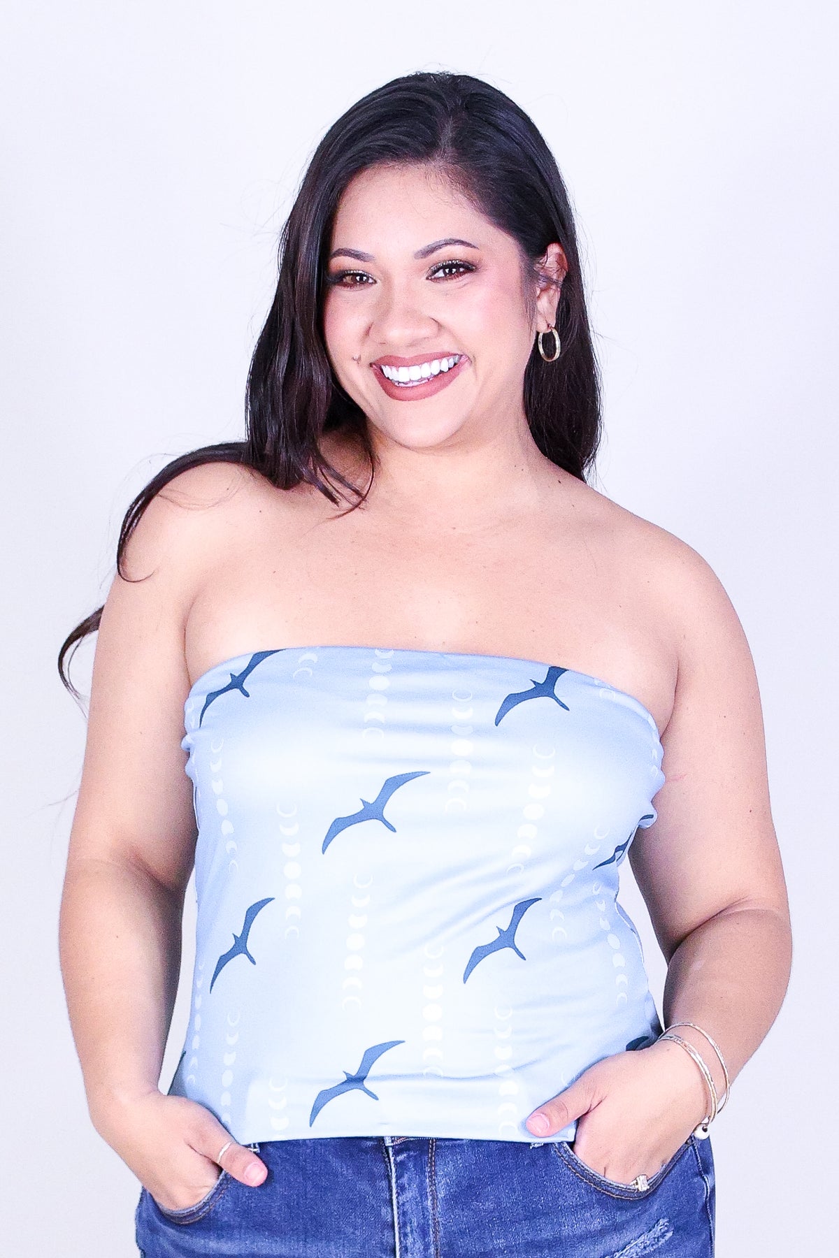 IWA MOON TUBE TOP is available in color LIGHT BLUE and in size 1X, 2X, 3X.