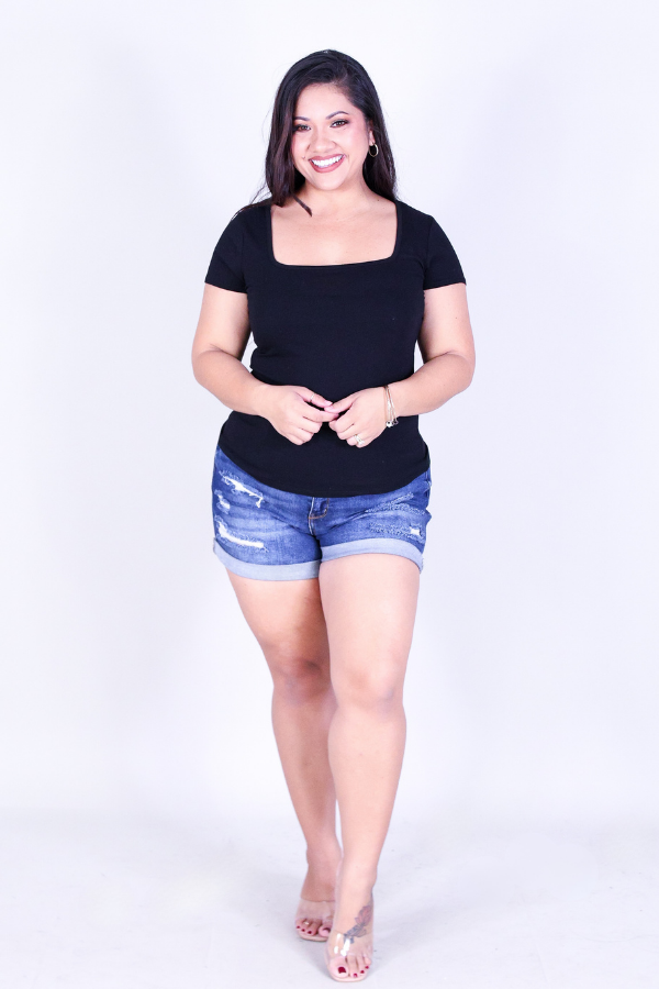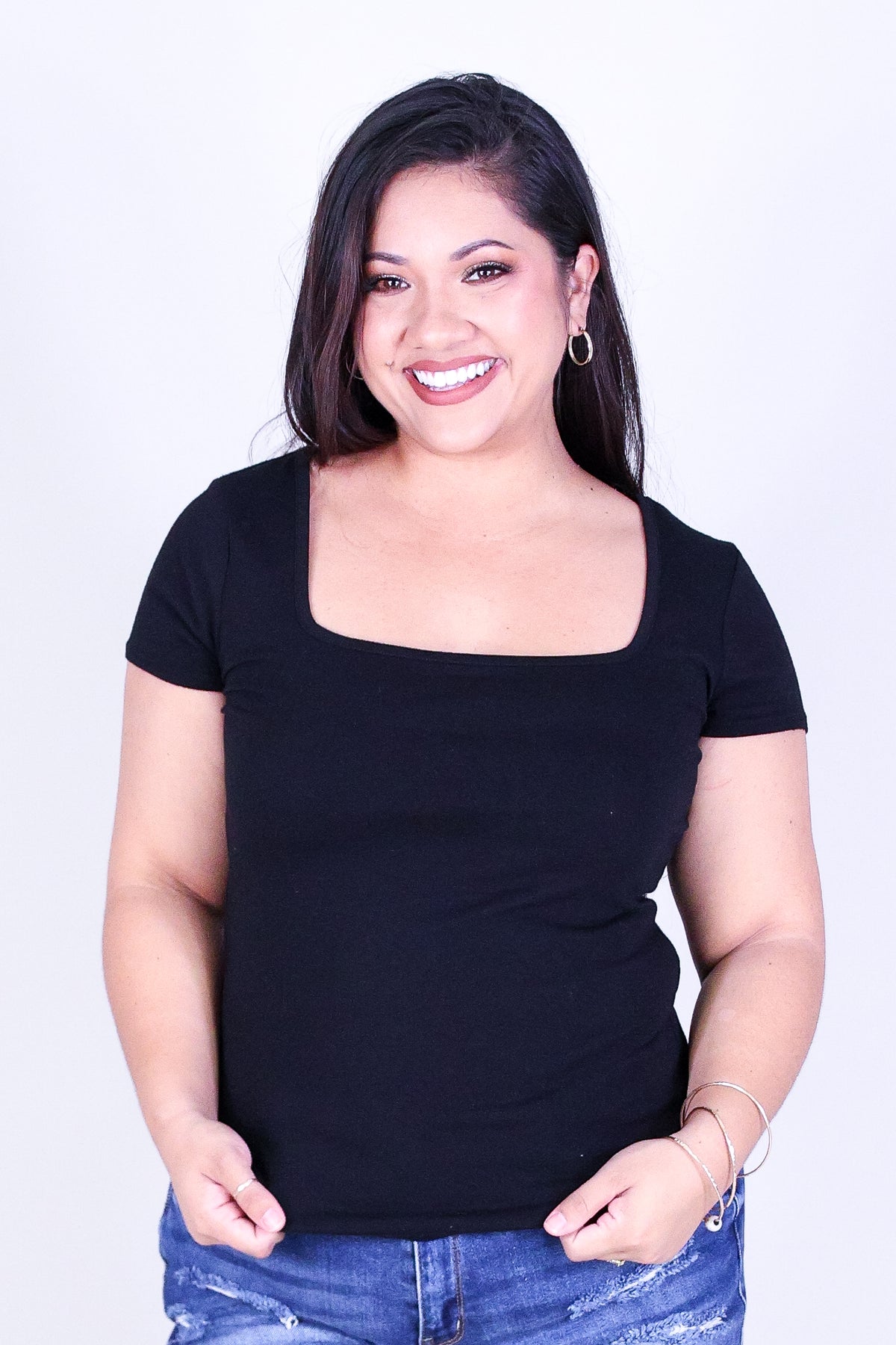 PRETTY ESSENTIAL TEE is available in color BLACK and in size 1X, 2X, 3X.
