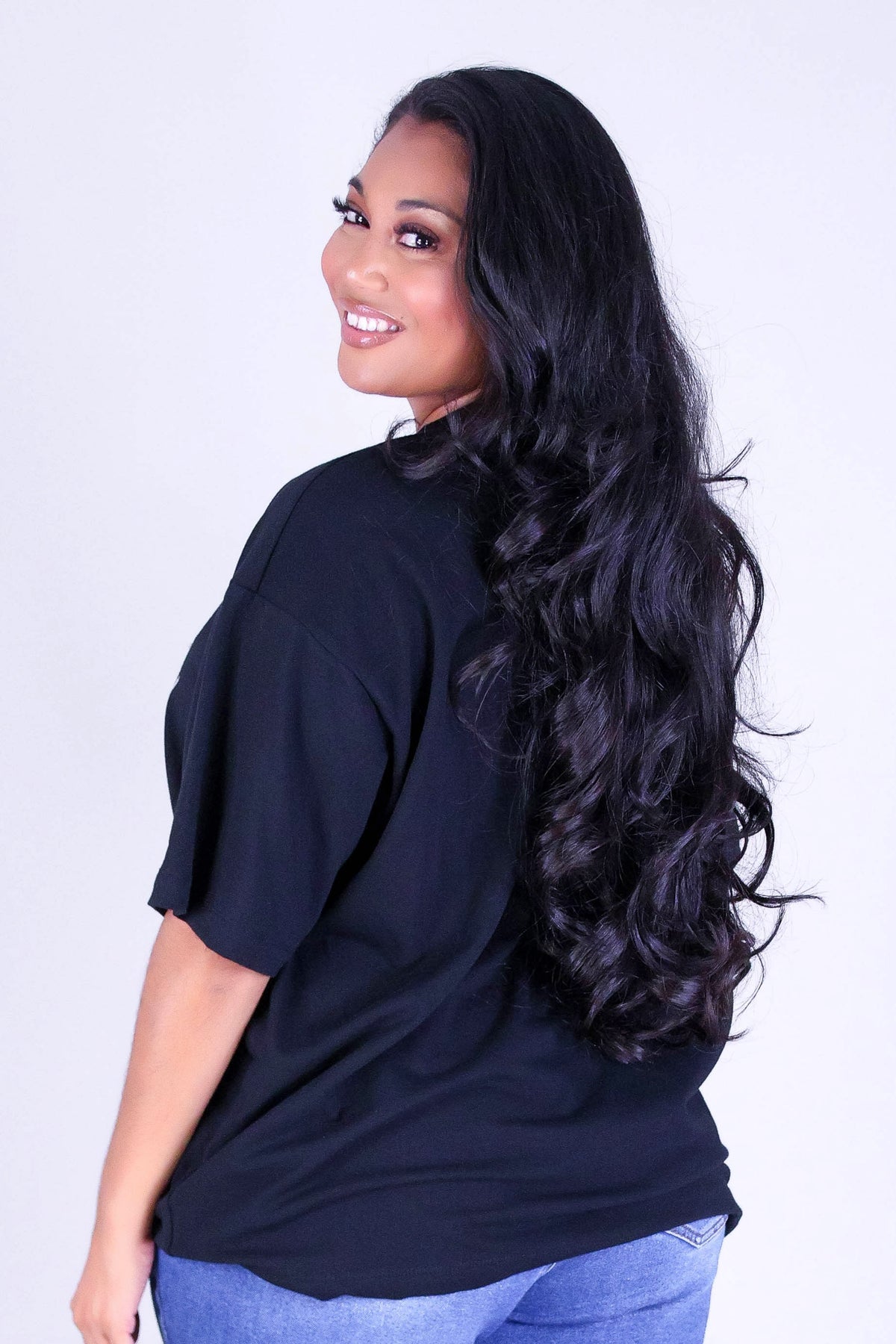 ALOHA HIBISCUS TEE is available in color BLACK and in size 1X, 2X, 3X.