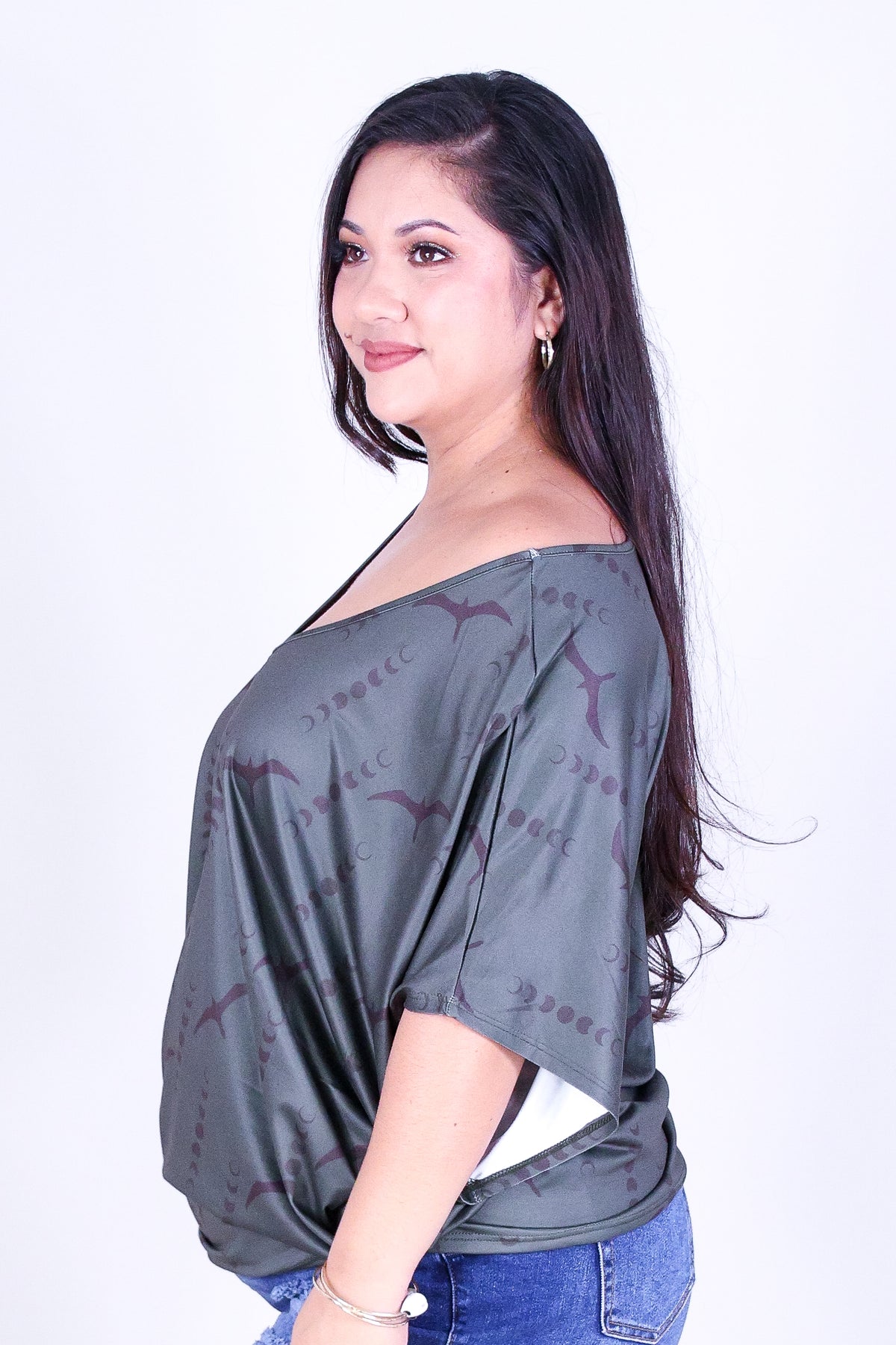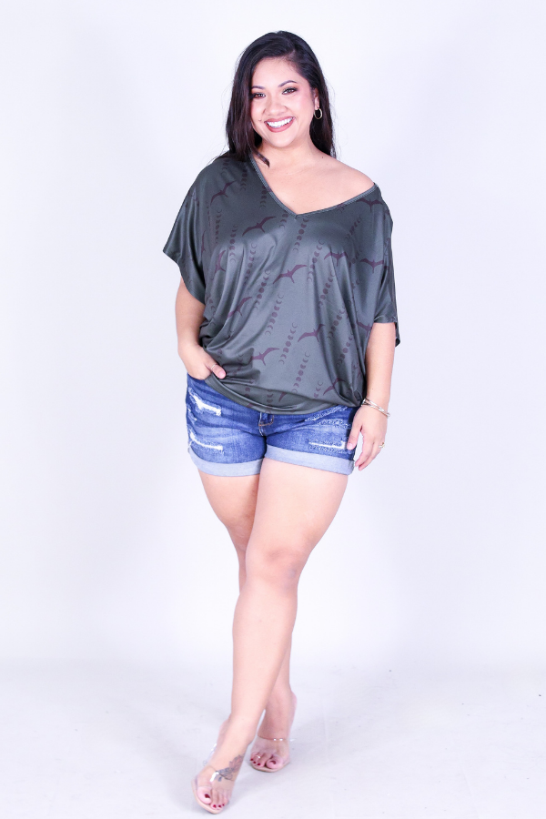 IWA MOON DOLMAN TOP is available in color GREY and in size 1X, 2X, 3X.