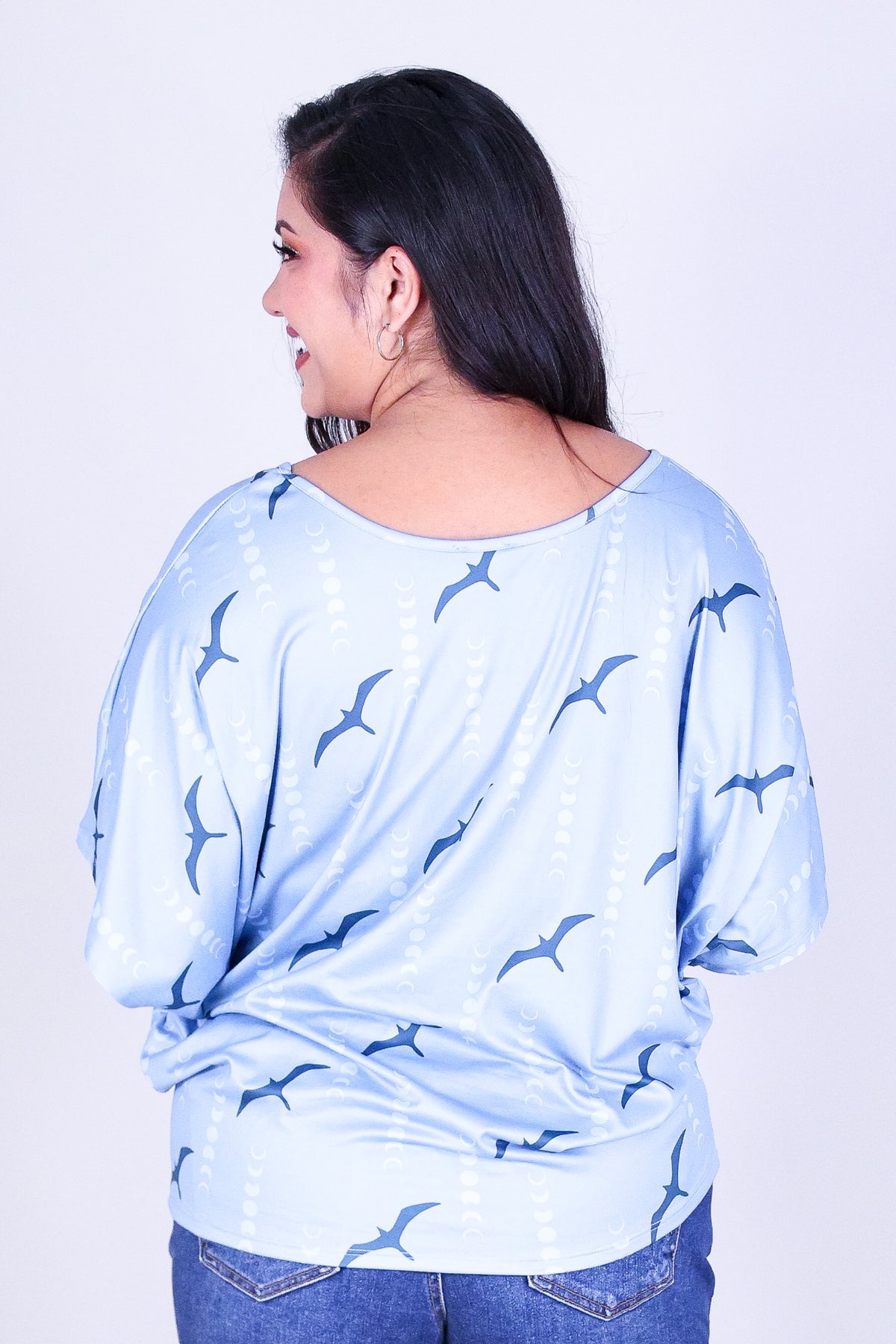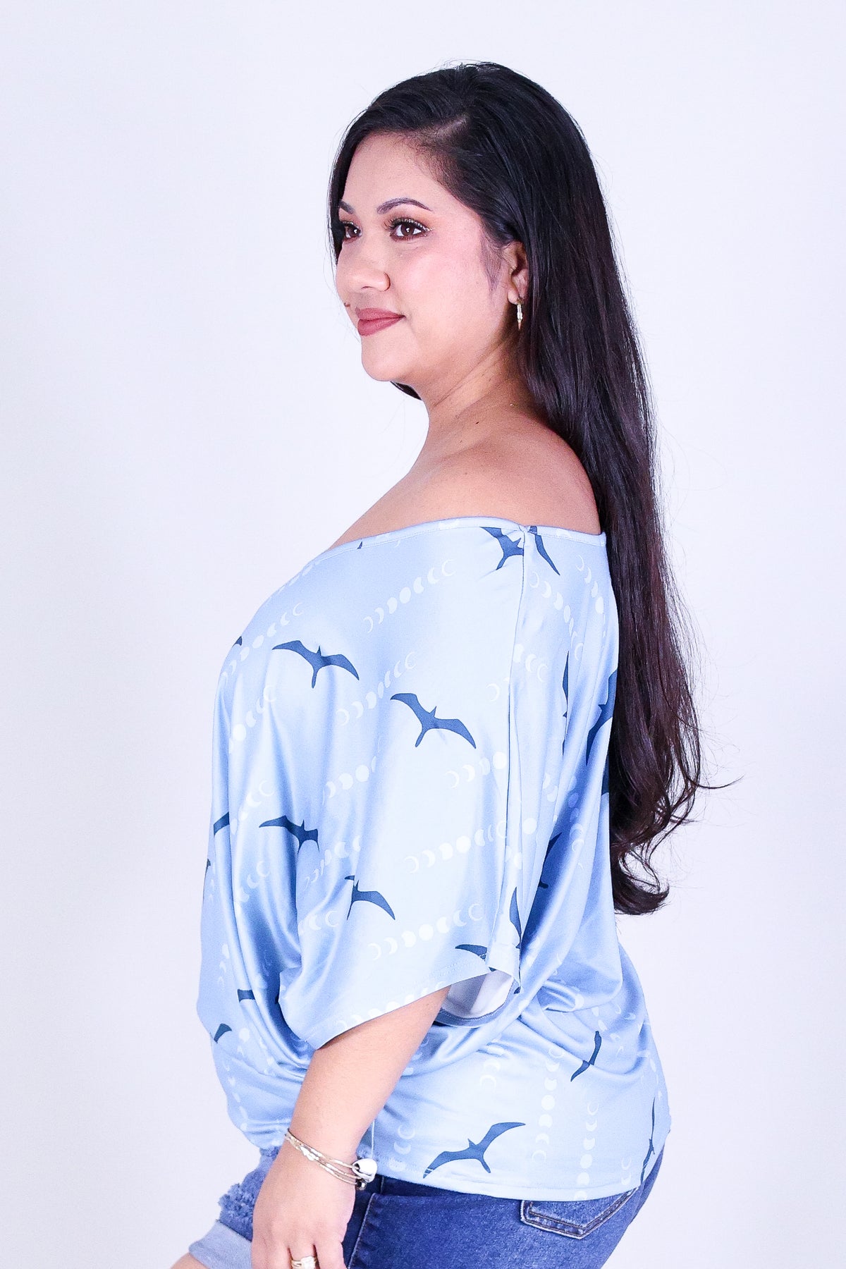 IWA MOON DOLMAN TOP is available in color LIGHT BLUE and in size 1X, 2X, 3X.