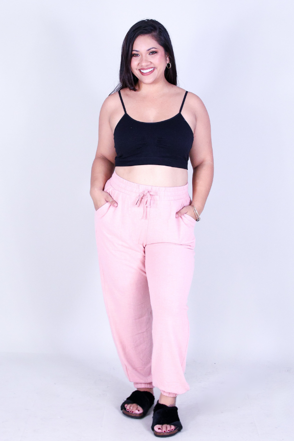 HERE TO STAY JOGGER is available in color LT. PINK and in size 1X, 2X, 3X.