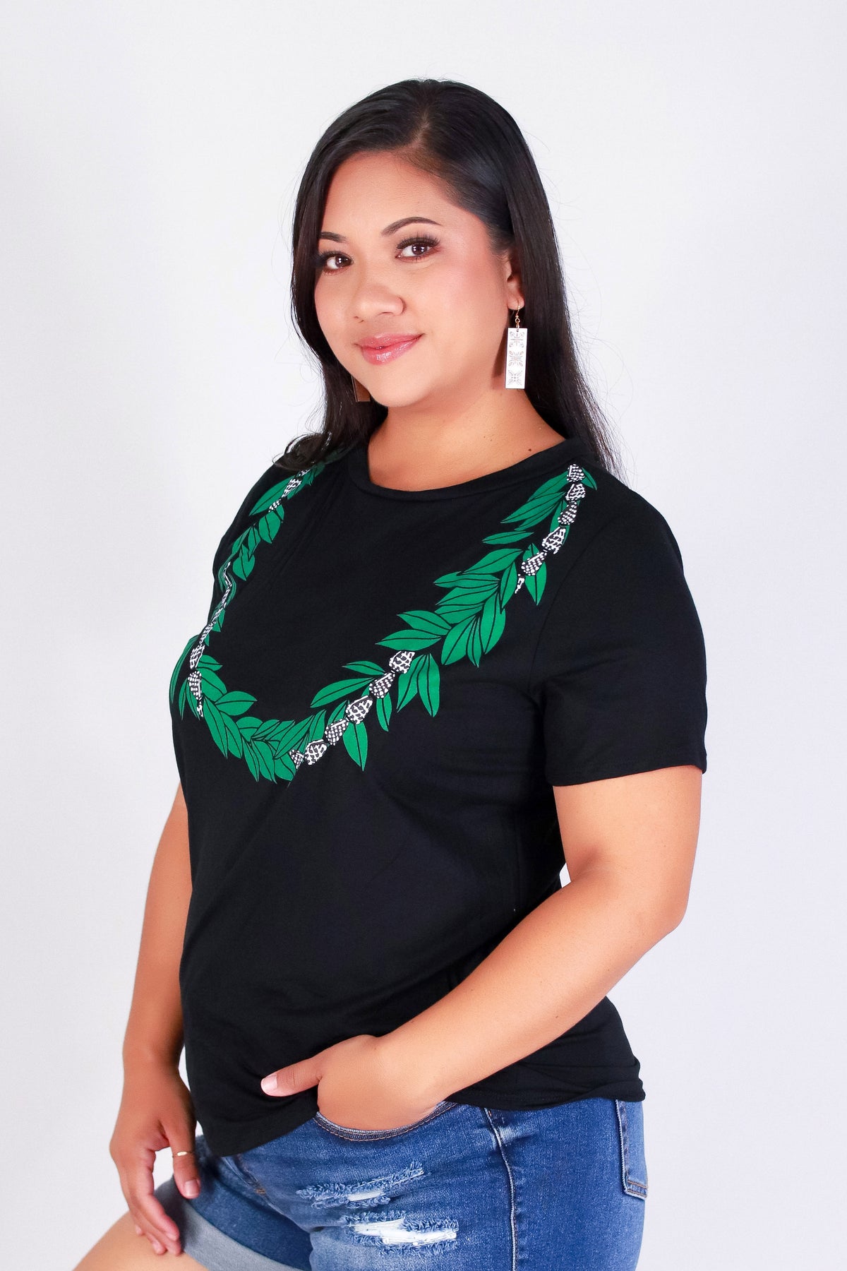 MAILE SHELL LEI TEE is available in color BLACK and in size 1X, 2X, 3X.