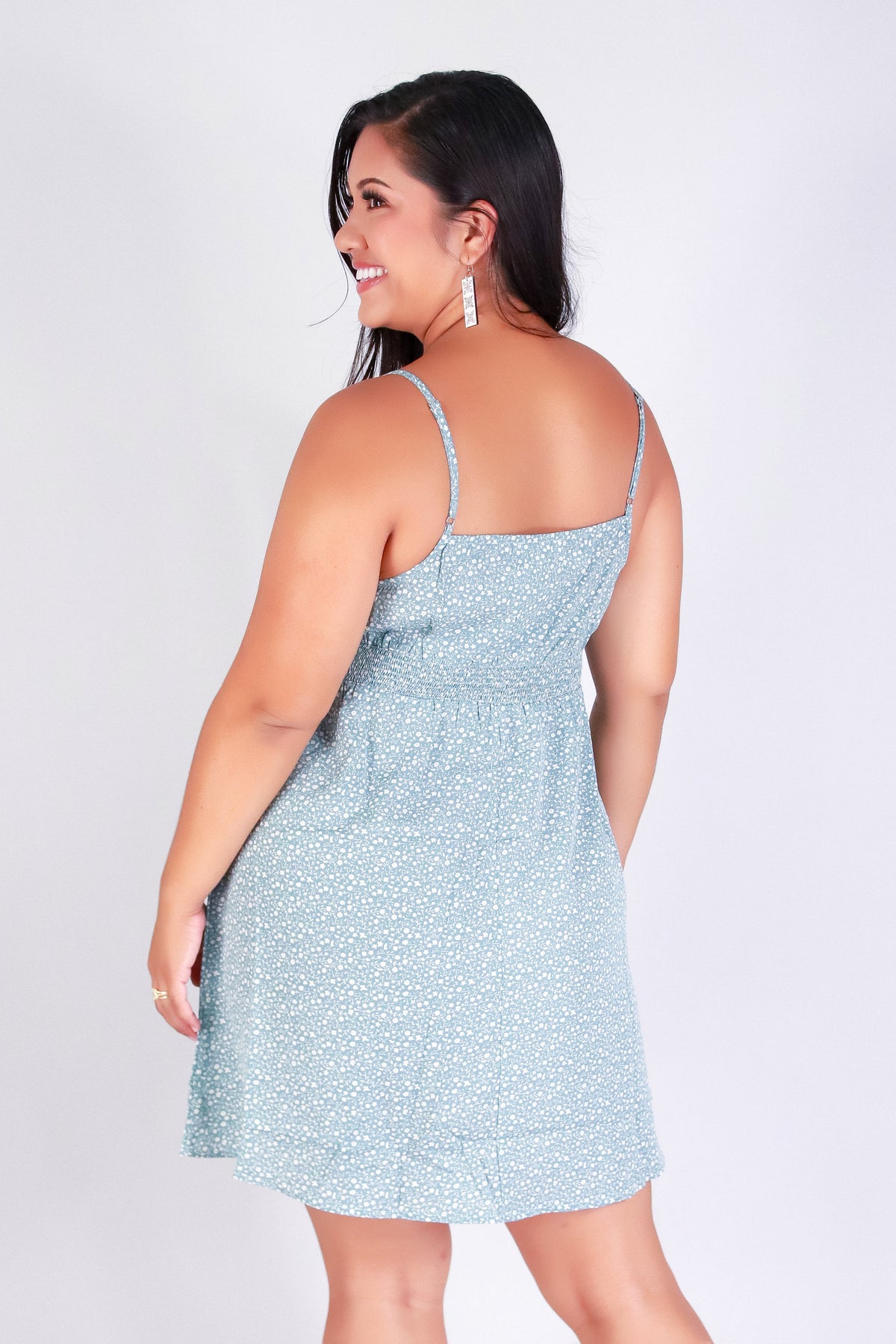 SWEET SERENITY DRESS is available in color LIGHT BLUE and in size 1X, 2X, 3X.