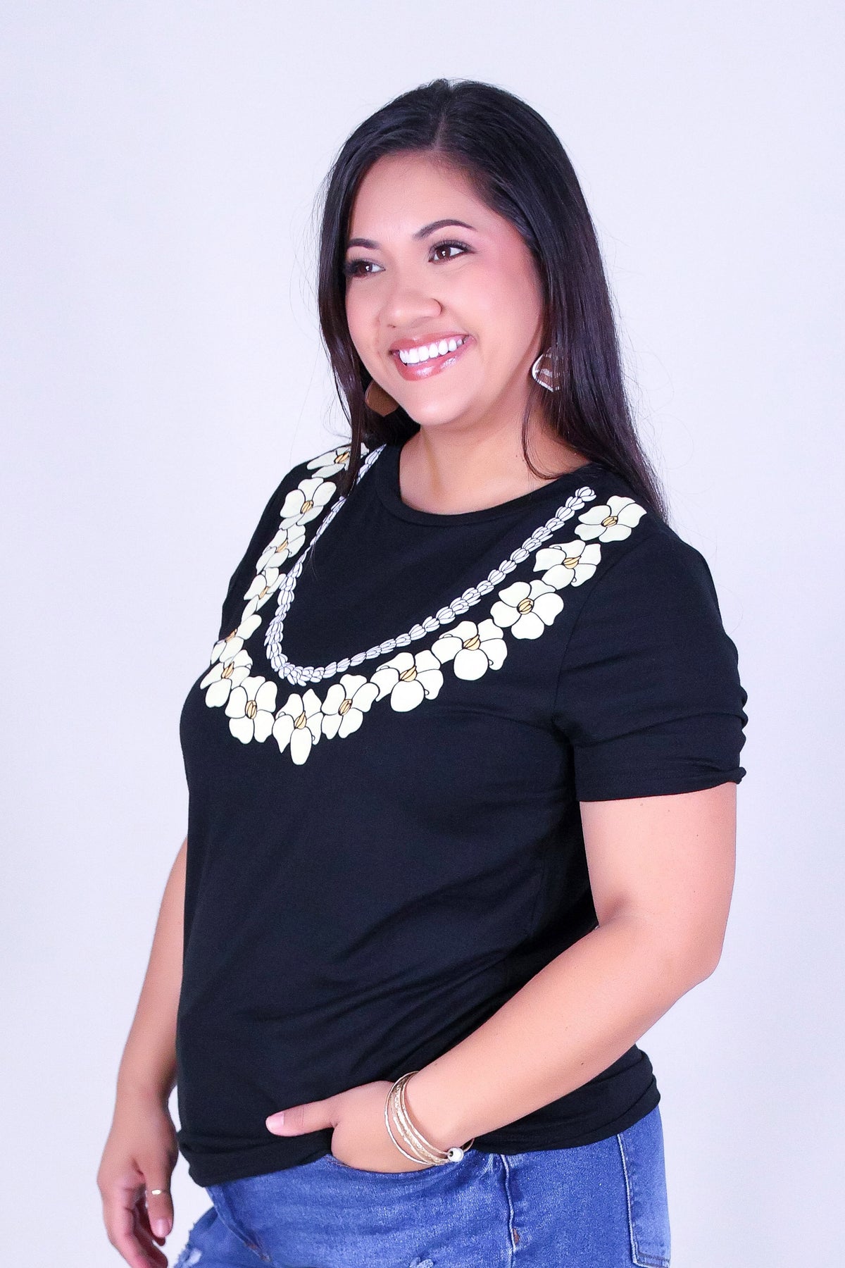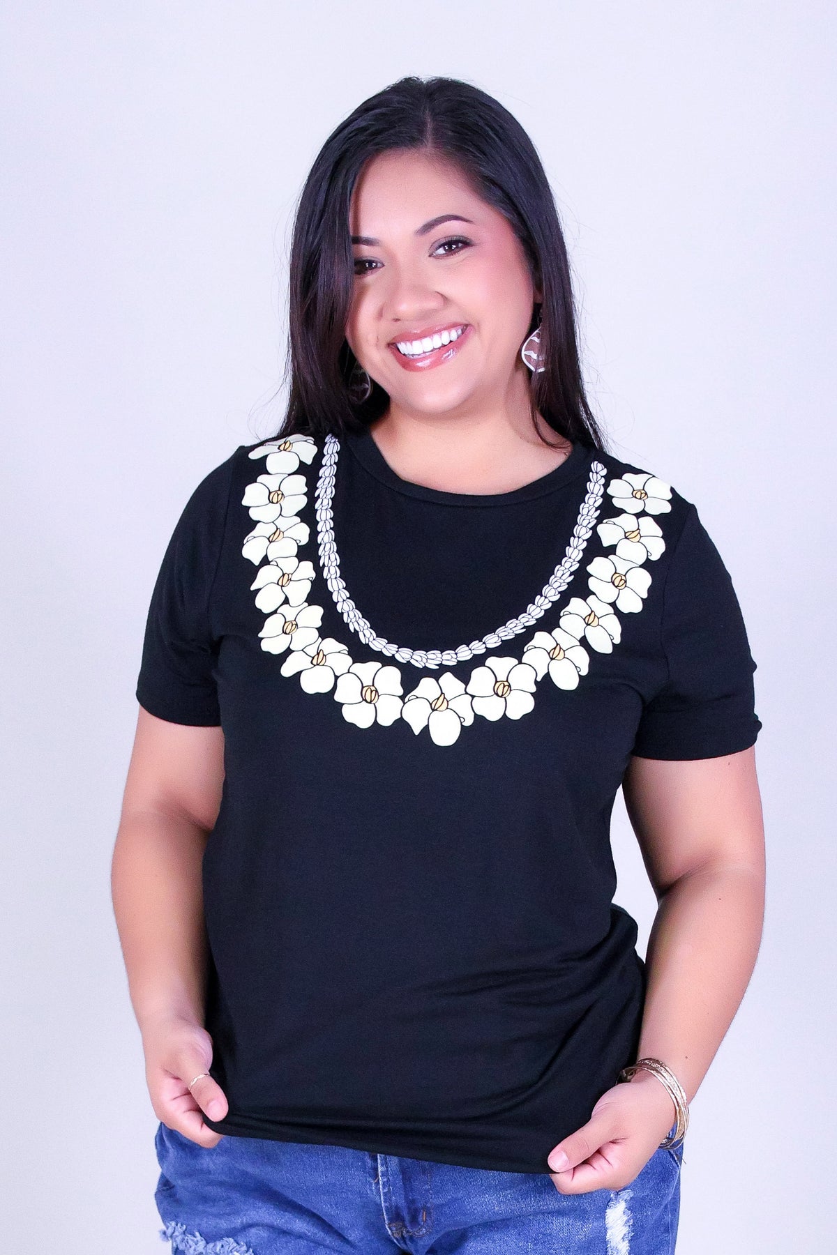 PIKAKE FRONT PUAKENIKENI LEI TEE is available in color BLACK and in size 1X, 2X, 3X.