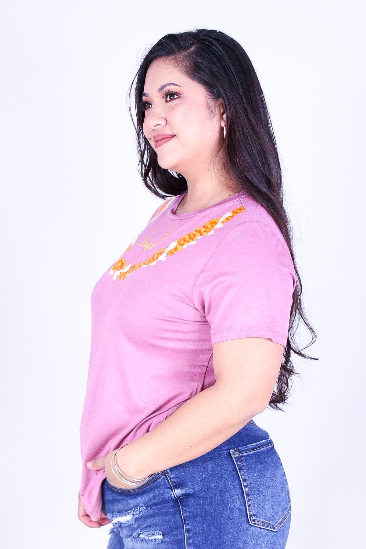 KUUIPO LEI TEE is available in color DARK MAUVE and in size 1X, 2X, 3X.