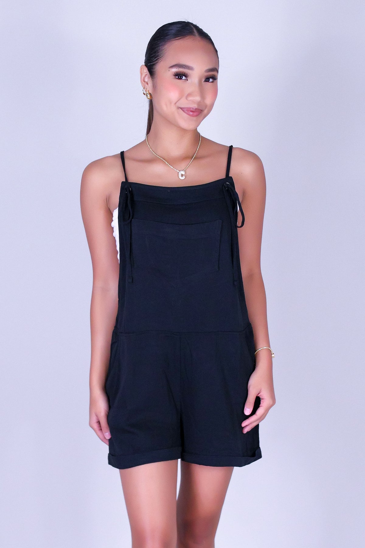 EASY DAYS ROMPER is available in color BLACK and in size SMALL, MED, LARGE.