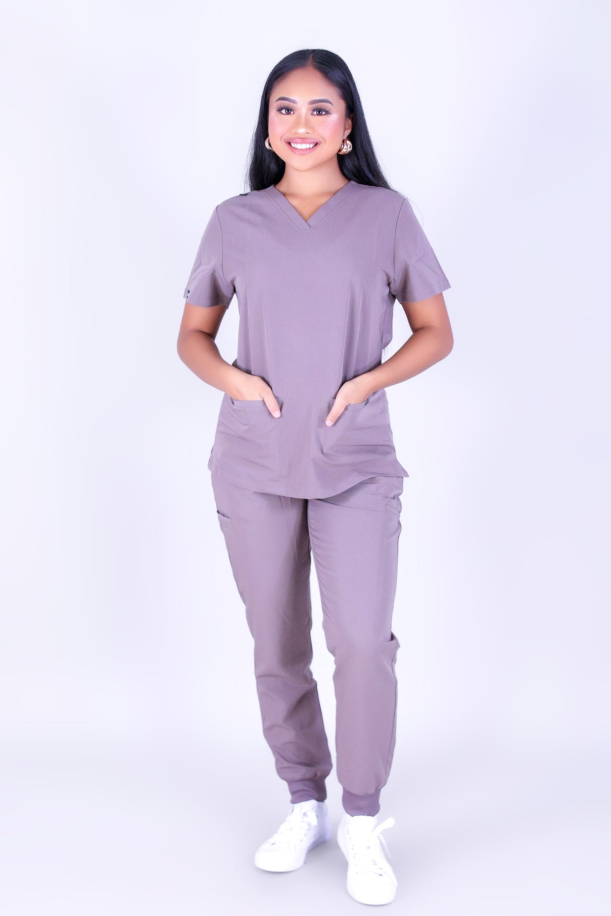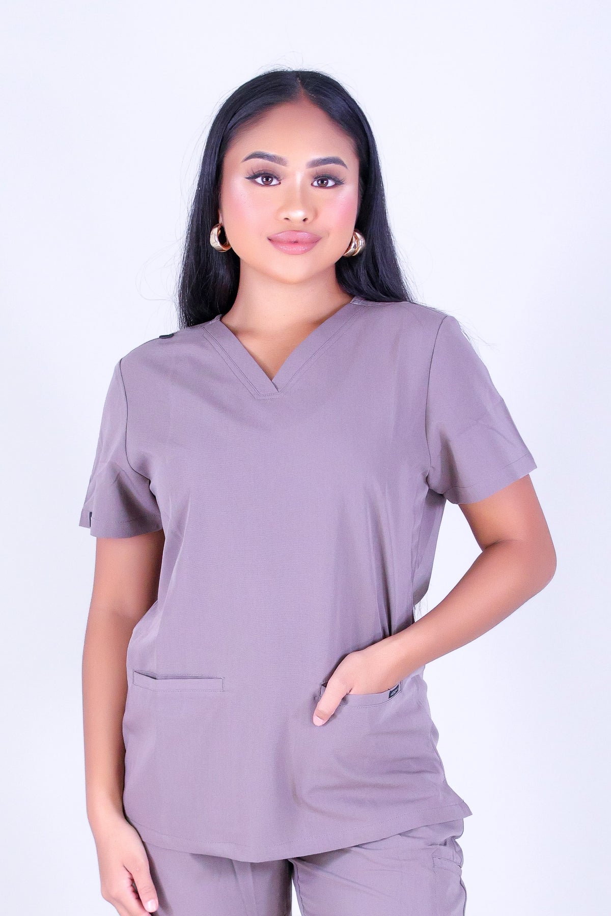 EVERYDAY HEALING SCRUB is available in color TAUPE and in size XS, SMALL, MED, LARGE.