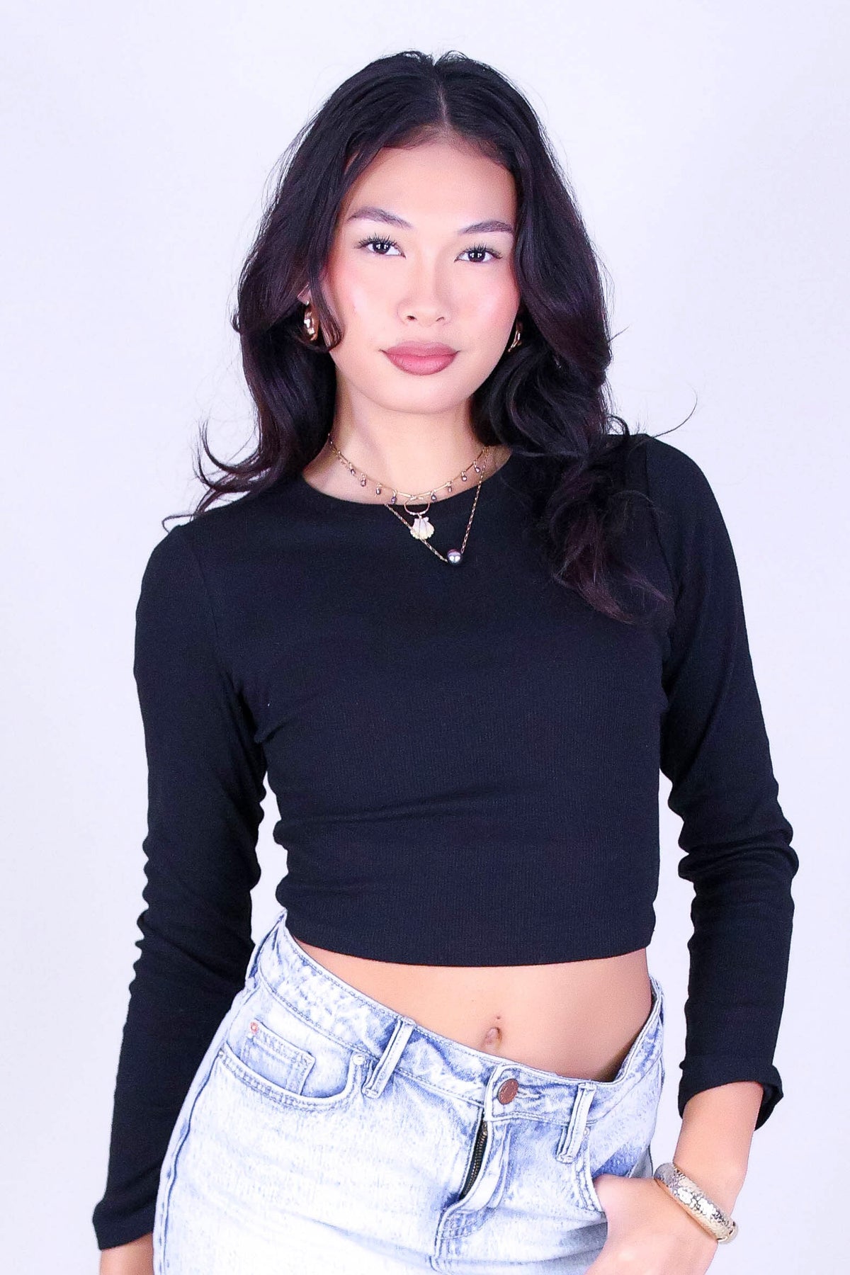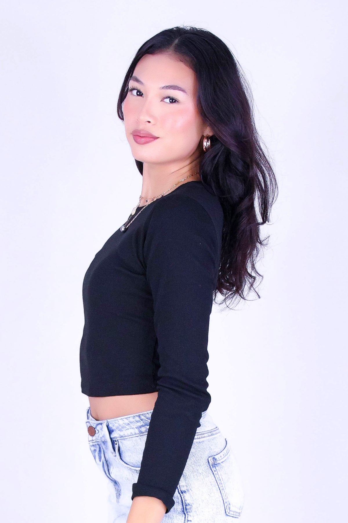 EVERYDAY RIB LONG SLEEVE TOP is available in color BLACK and in size SMALL, MED, LARGE.