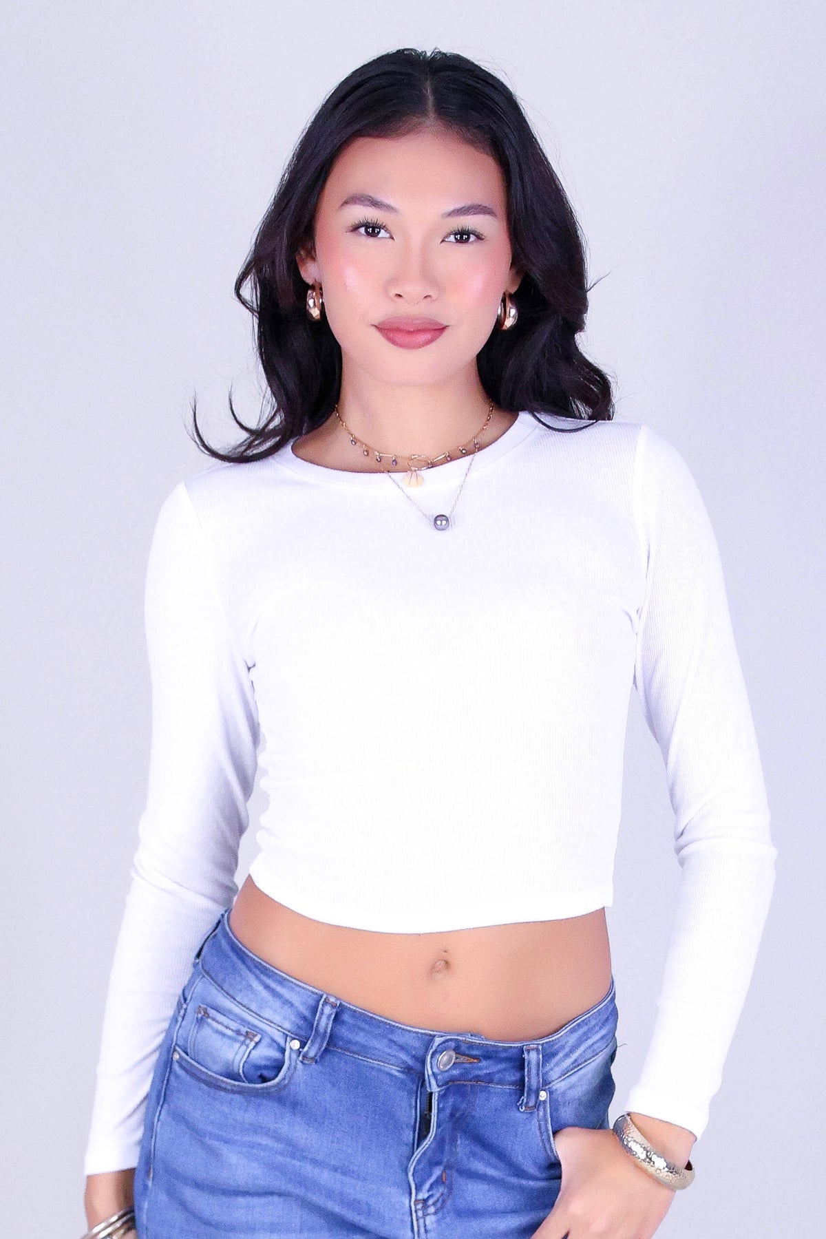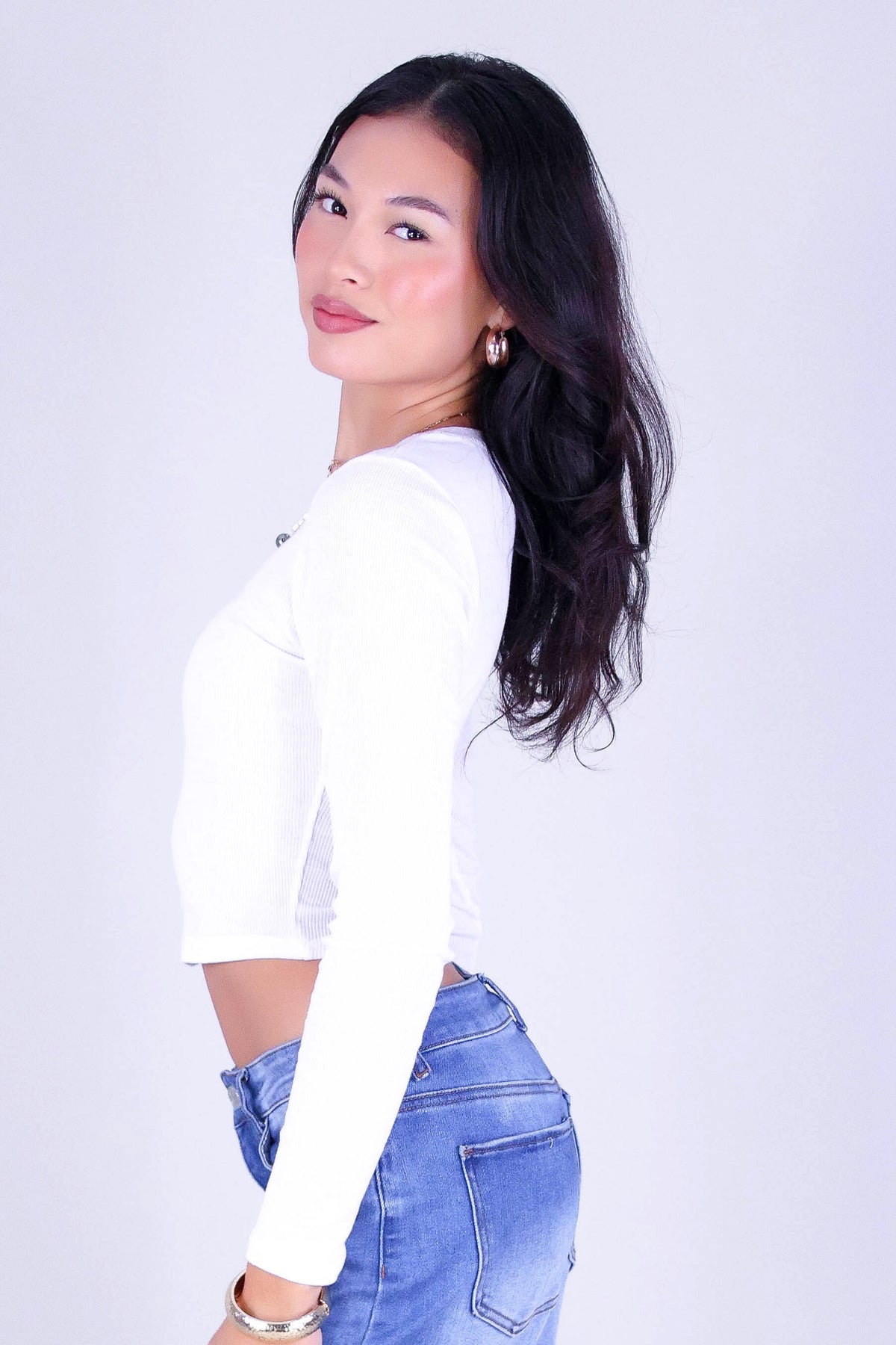 EVERYDAY RIB LONG SLEEVE TOP is available in color WHITE and in size SMALL, MED, LARGE.