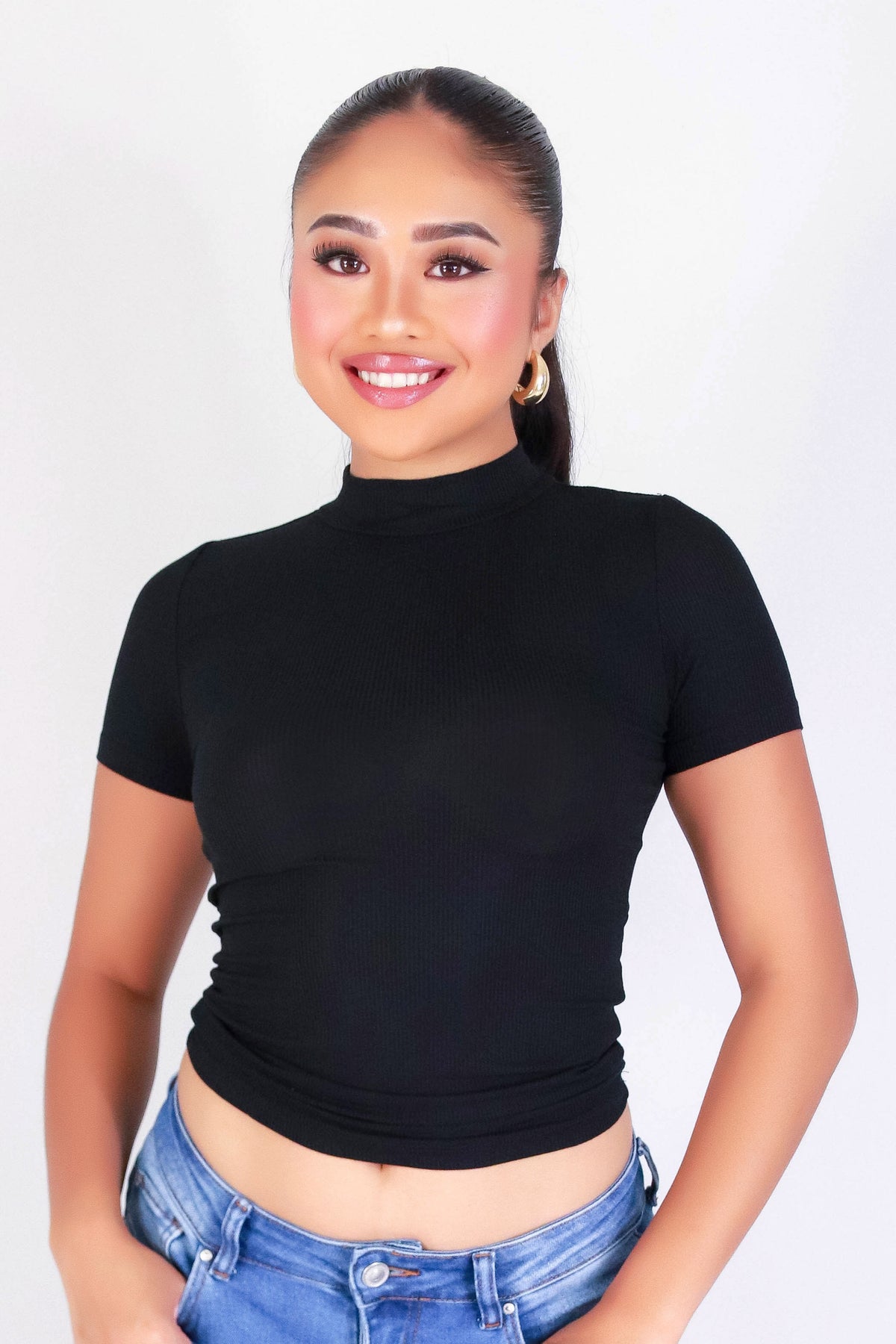 CLASSIC MOCK TOP is available in color BLACK and in size SMALL, MED, LARGE, XL.