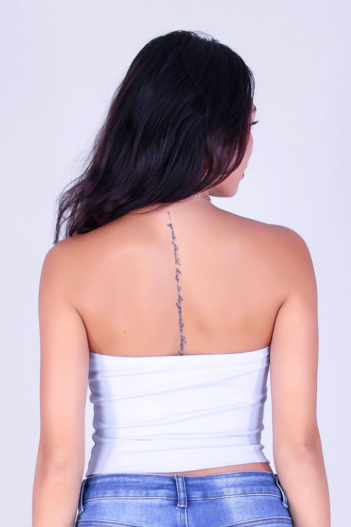 TIME OF YOUR LIFE TUBE TOP is available in color LIGHT BLUE and in size SMALL, MED, LARGE.
