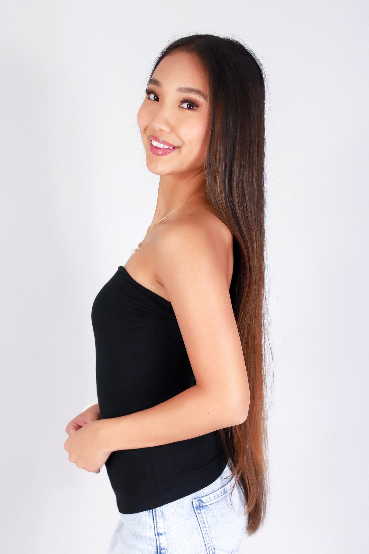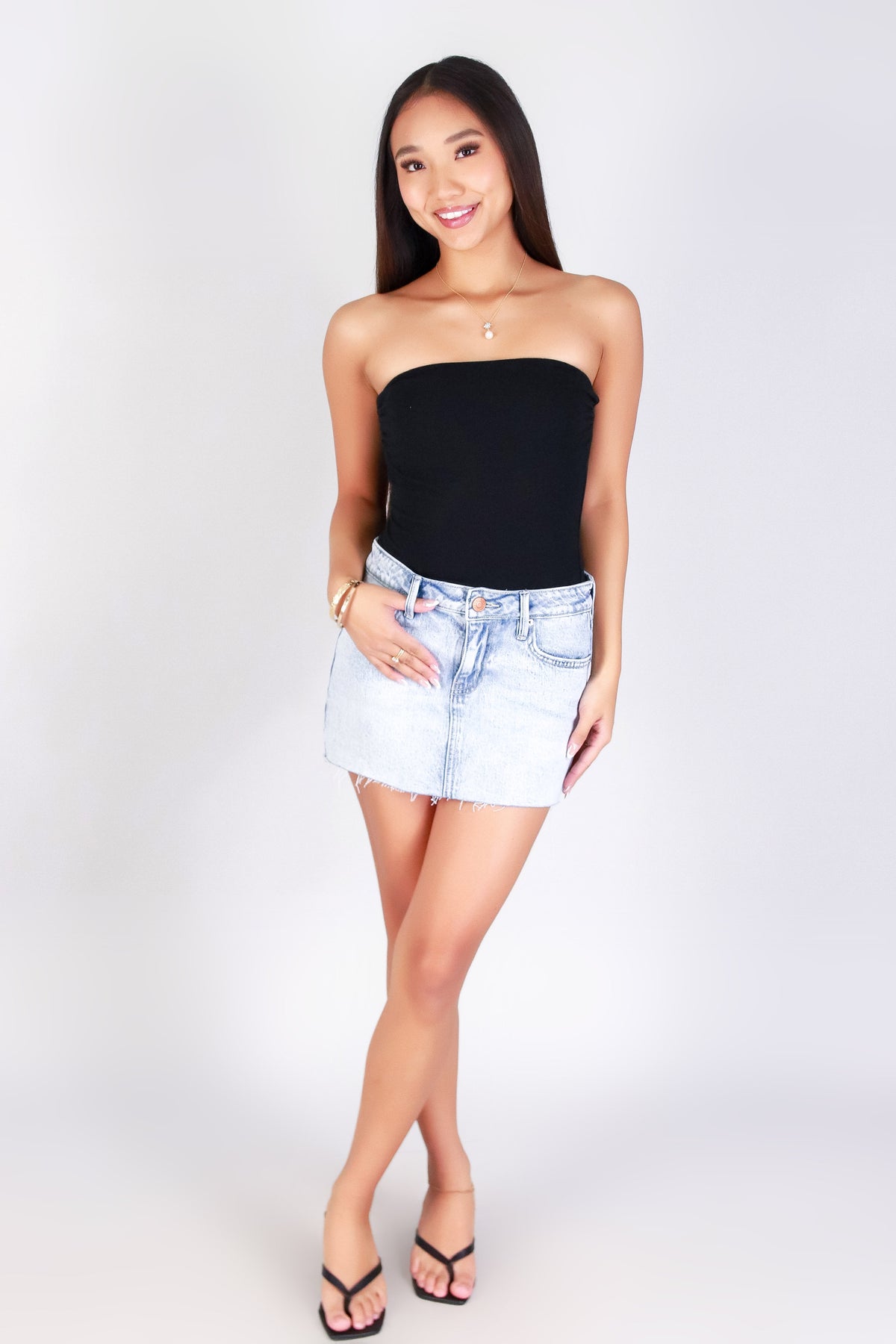 NO TELLING TUBE TOP is available in color BLACK and in size SMALL, MED, LARGE.