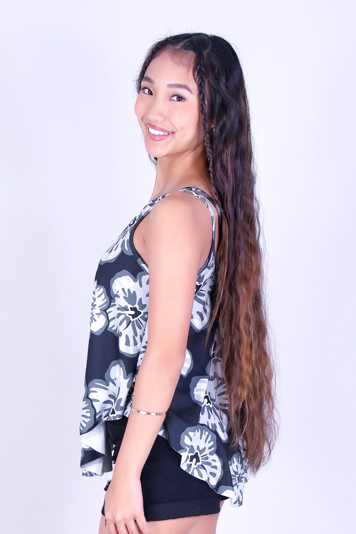 WATERCOLOR HIBISCUS TANK TOP is available in color BLACK and in size SMALL, MED, LARGE, XL.