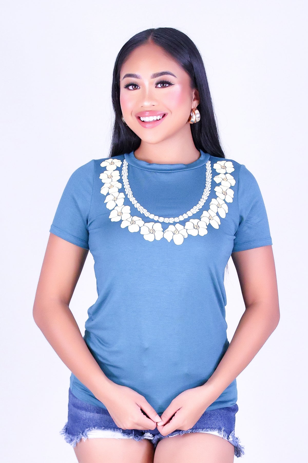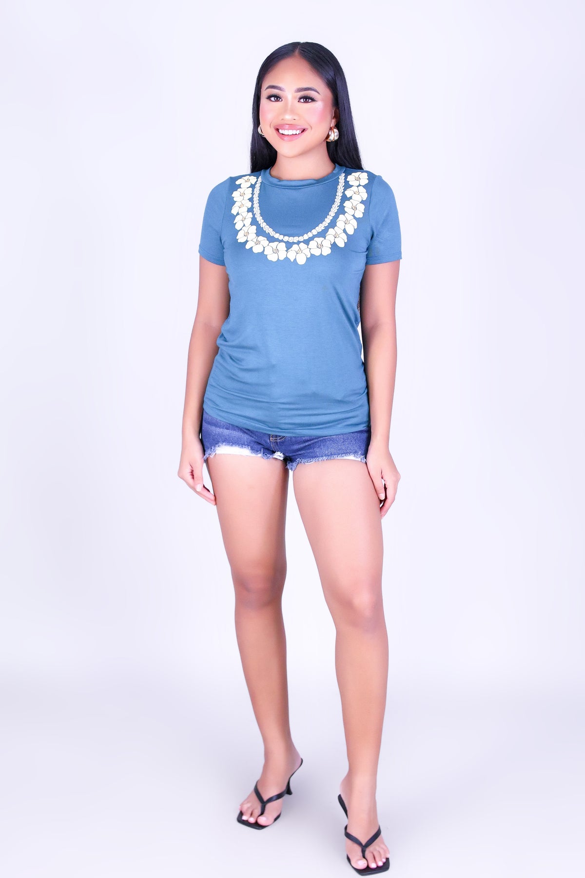 PIKAKE FRONT PUAKENIKENI TEE is available in color JADE and in size SMALL, MED, LARGE, XL.
