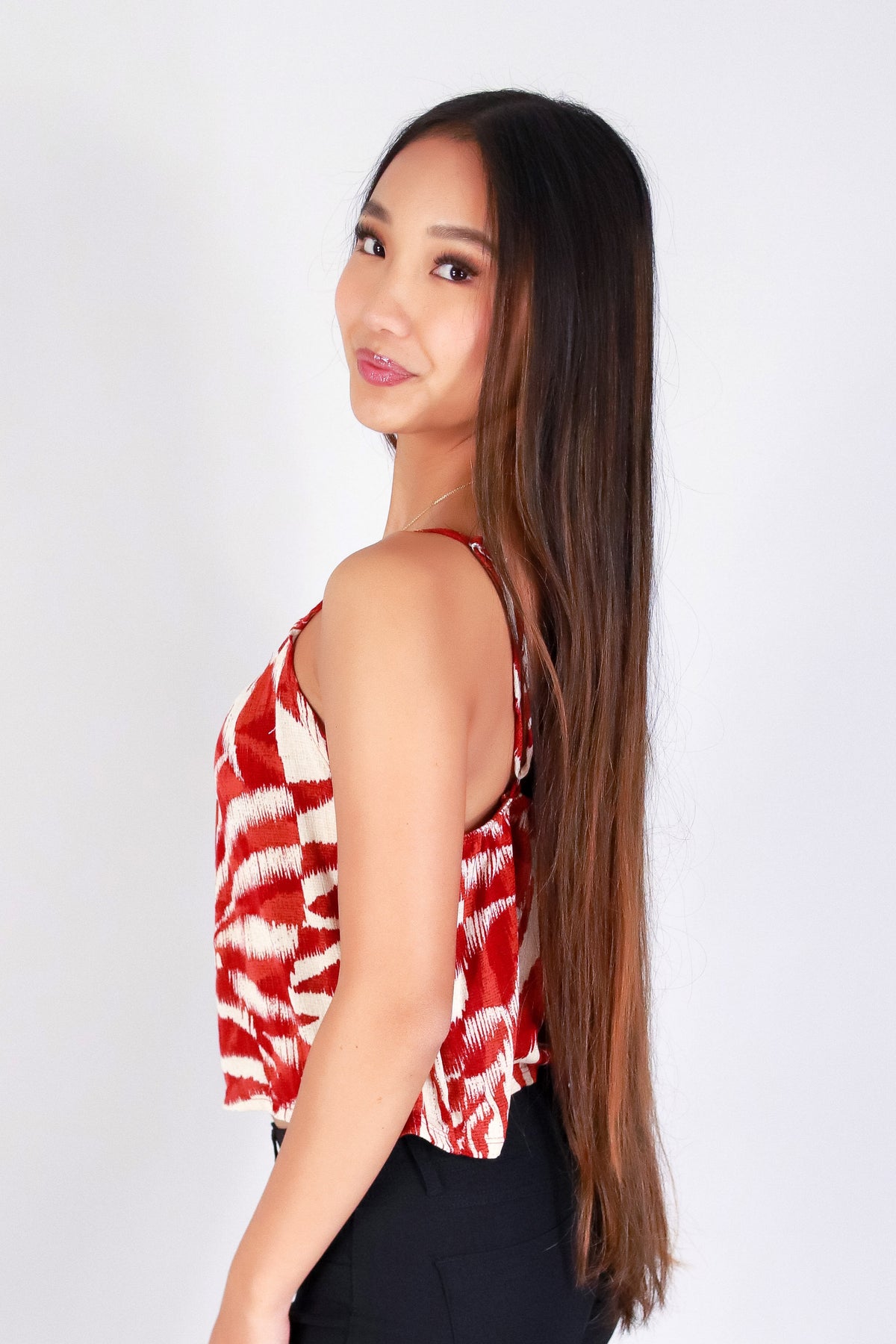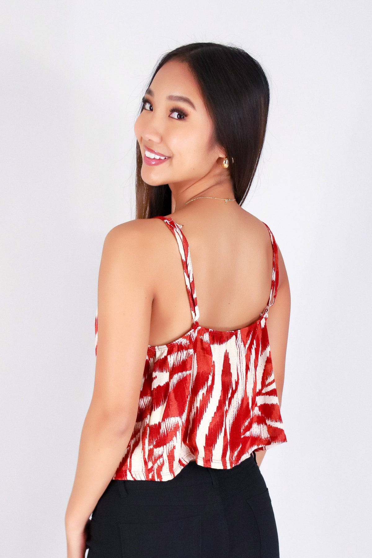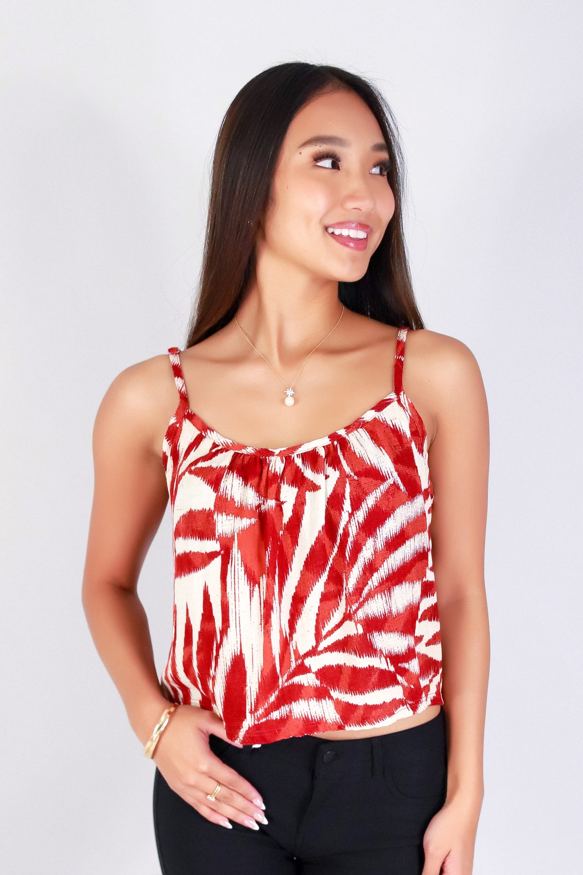 WATERCOLOR PARADISE CROP TOP is available in color RUST and in size SMALL, MED, LARGE.