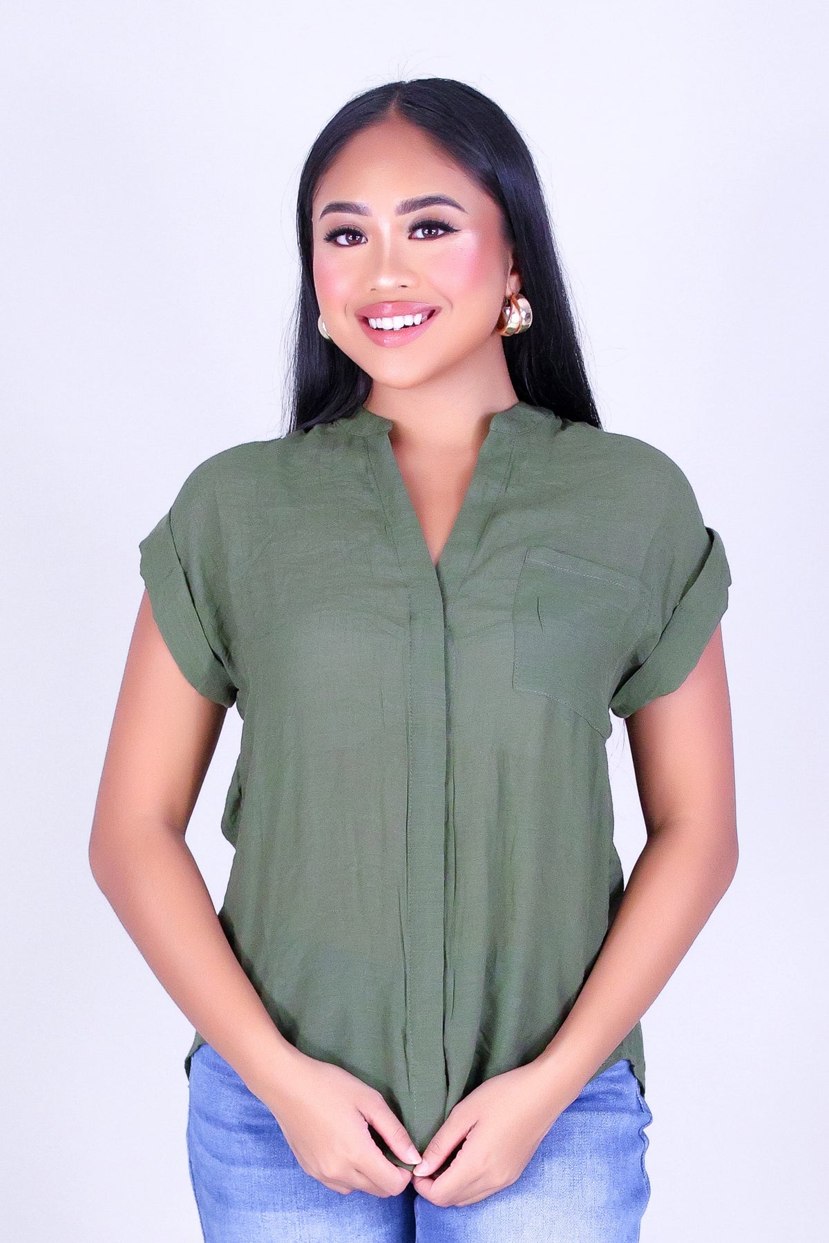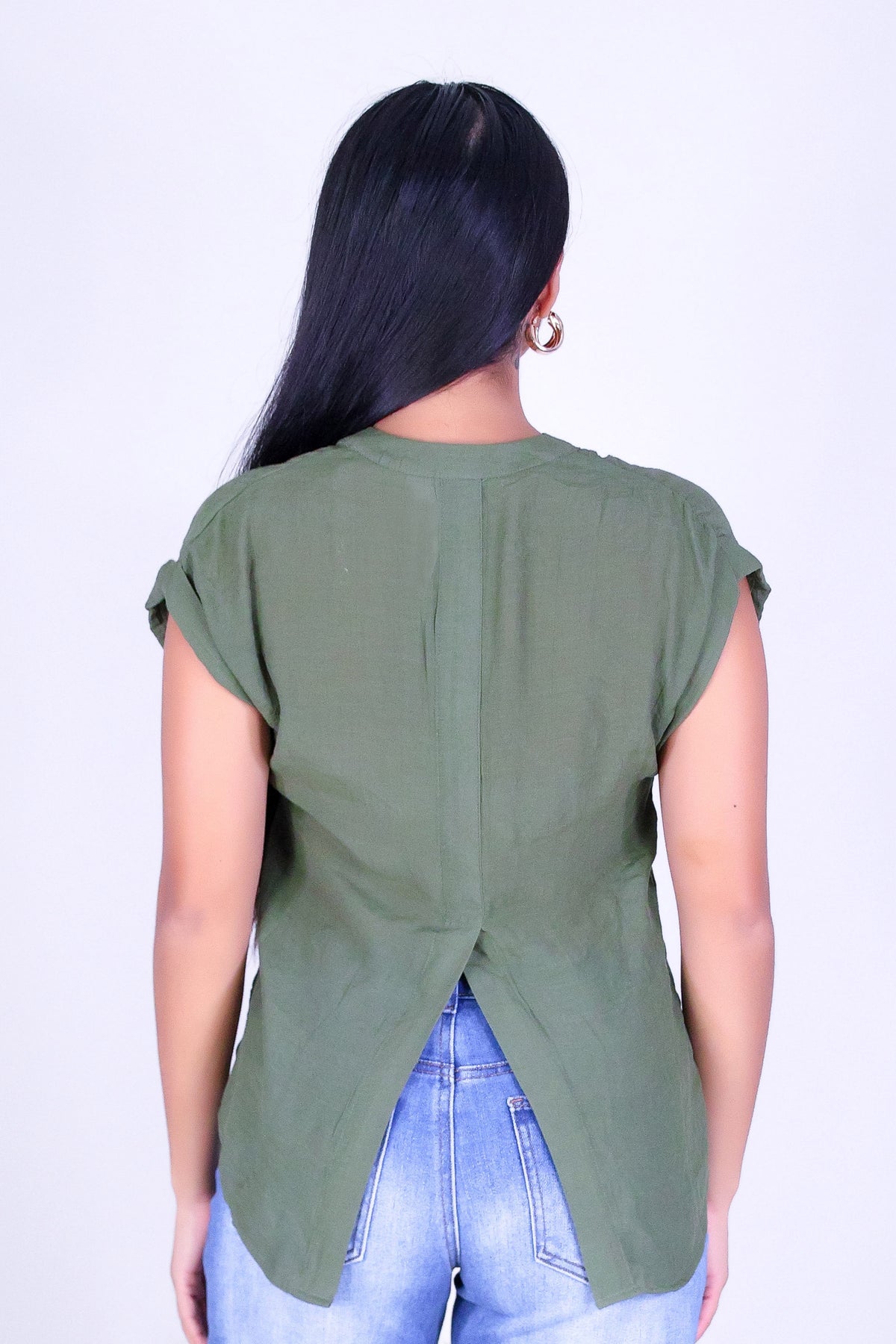 FOUND LOVE TOP is available in color OLIVE and in size SMALL, MED, LARGE.