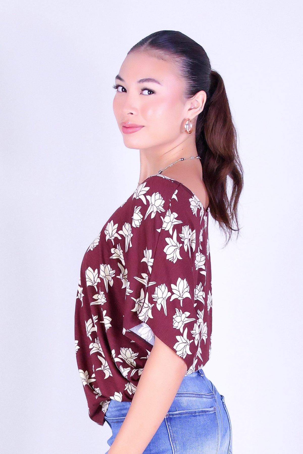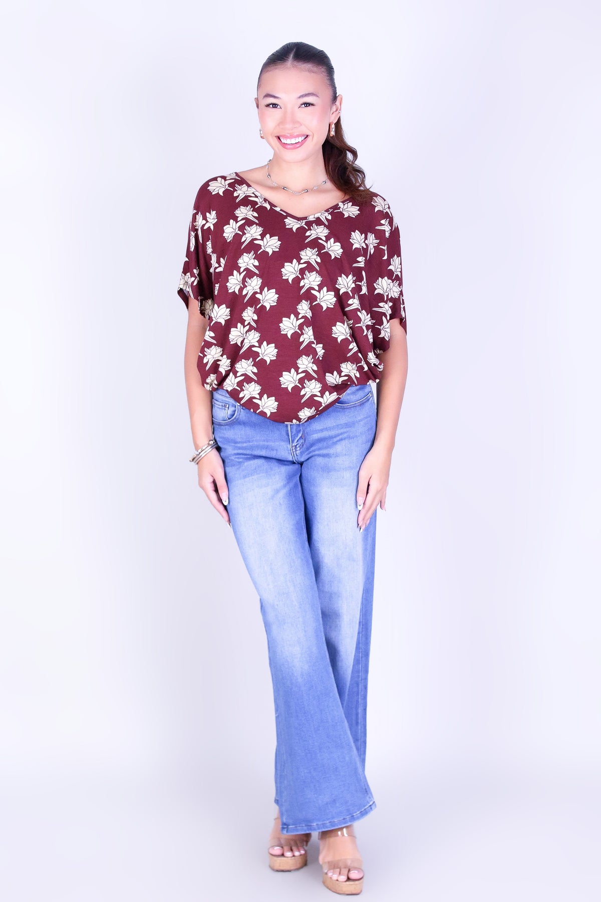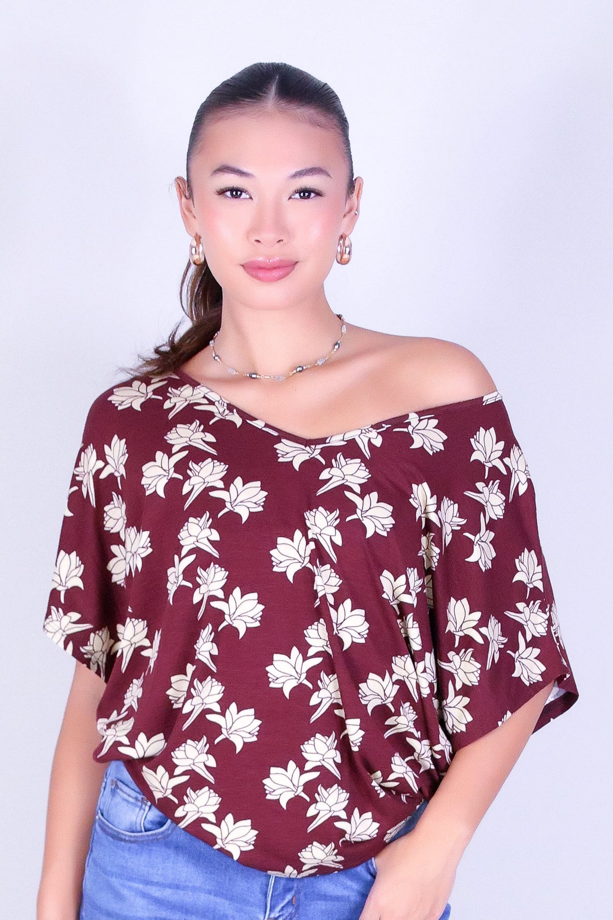 TUBEROSE DOLMAN TOP is available in color BROWN and in size SMALL, MED, LARGE, XL.