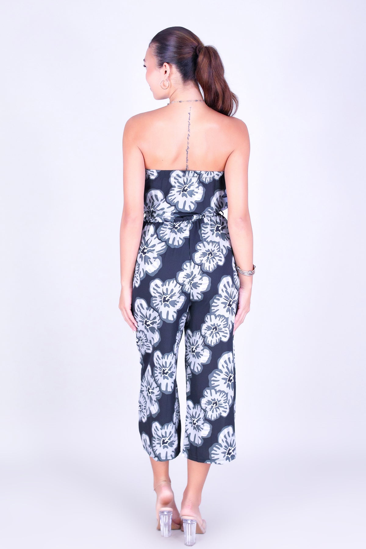 WATERCOLOR HIBISCUS TUBE JUMPSUIT is available in color BLACK and in size SMALL, MED, LARGE, XL.