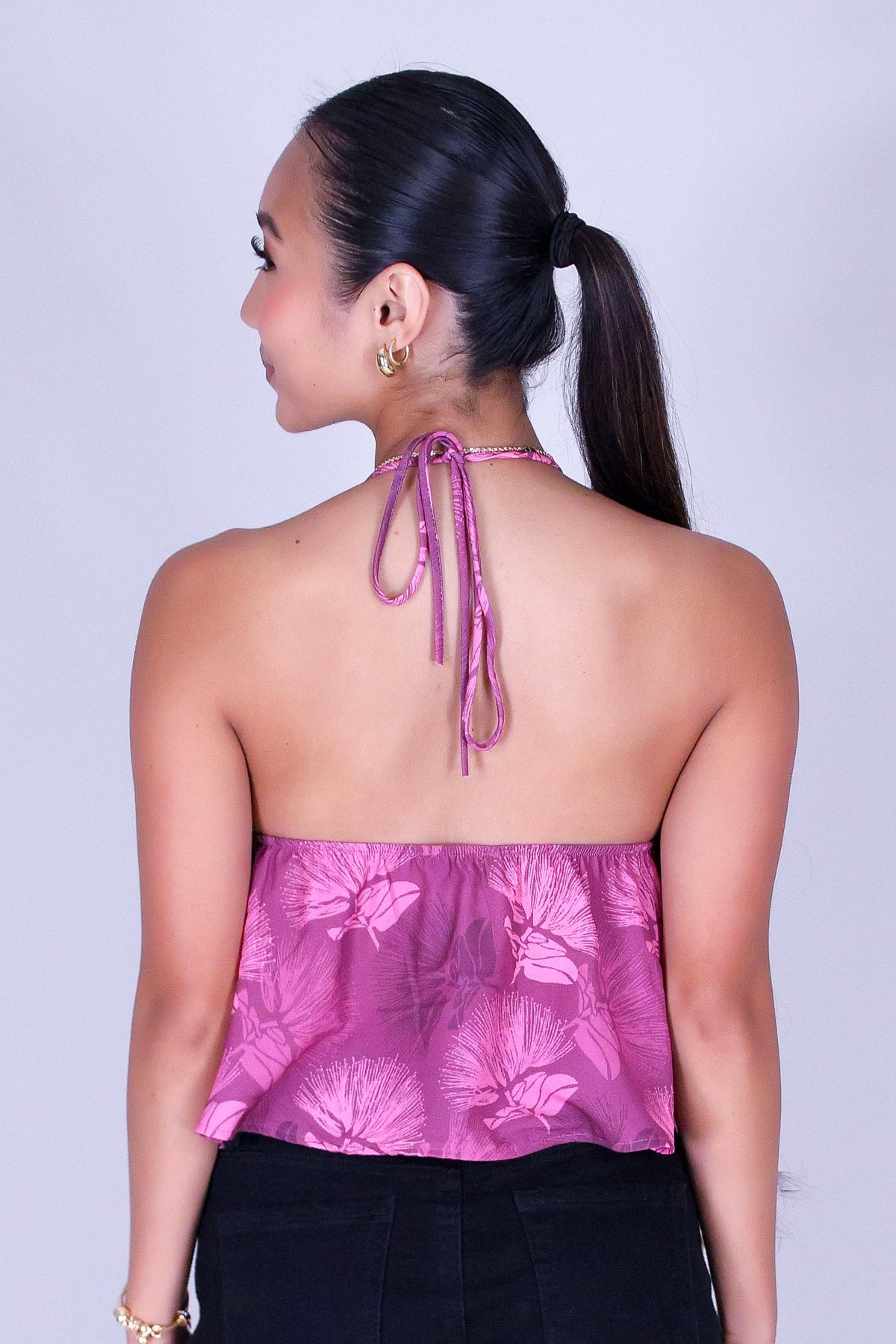 OHIA HALTER BABY DOLL TOP is available in color PINK and in size SMALL, MED, LARGE.