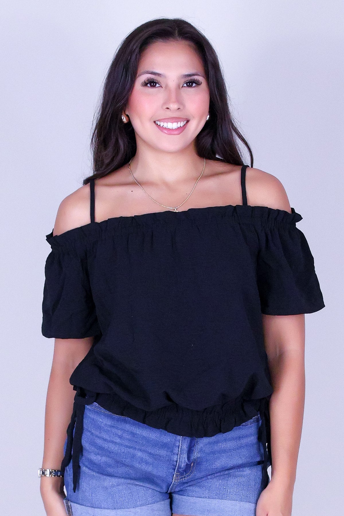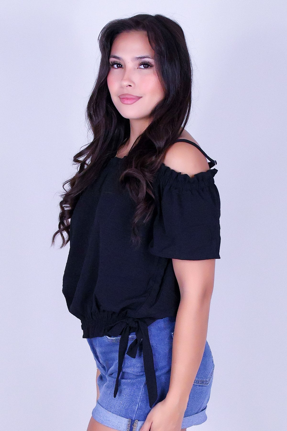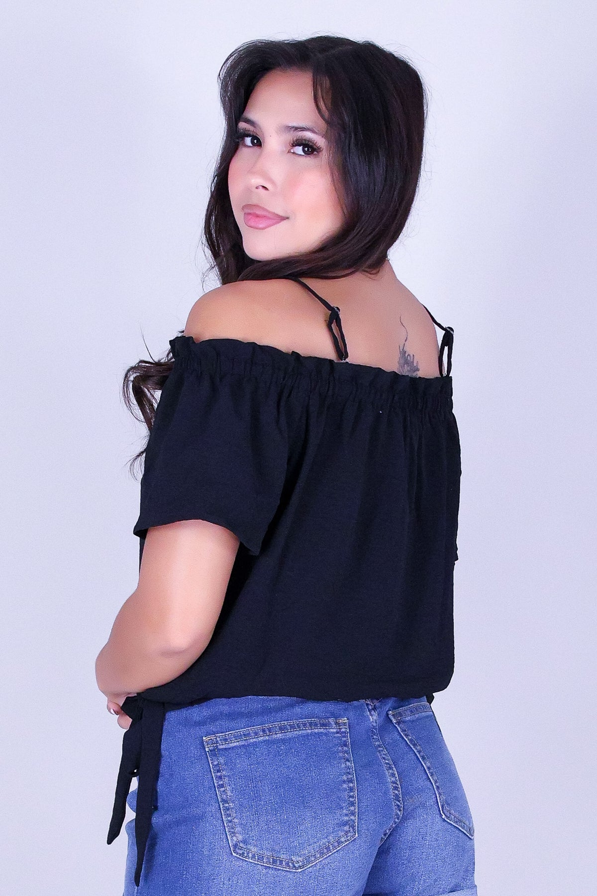 BREEZY TIE TOP is available in color BLACK and in size SMALL, MED, LARGE.