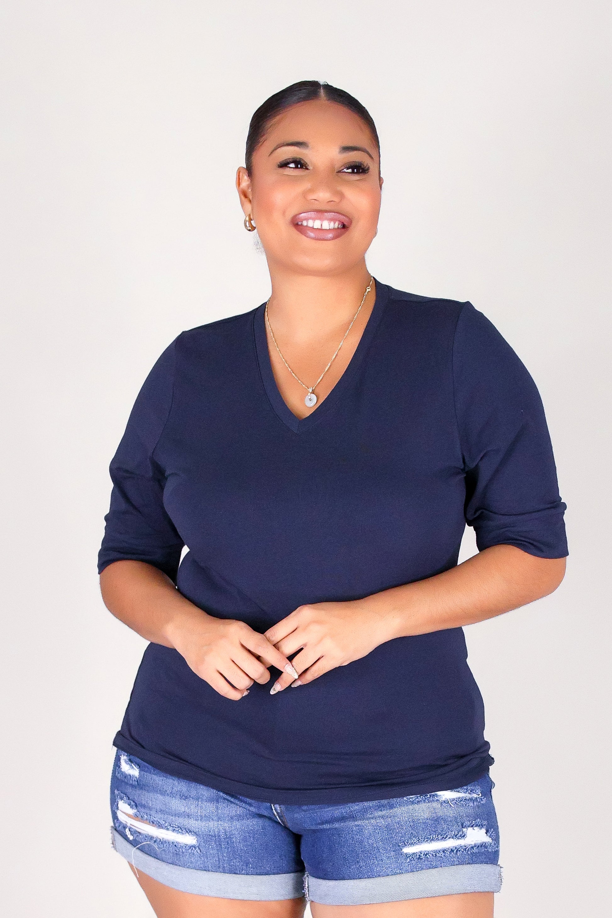 VICTORIA TEE is available in color NAVY and in size 1X, 2X, 3X.