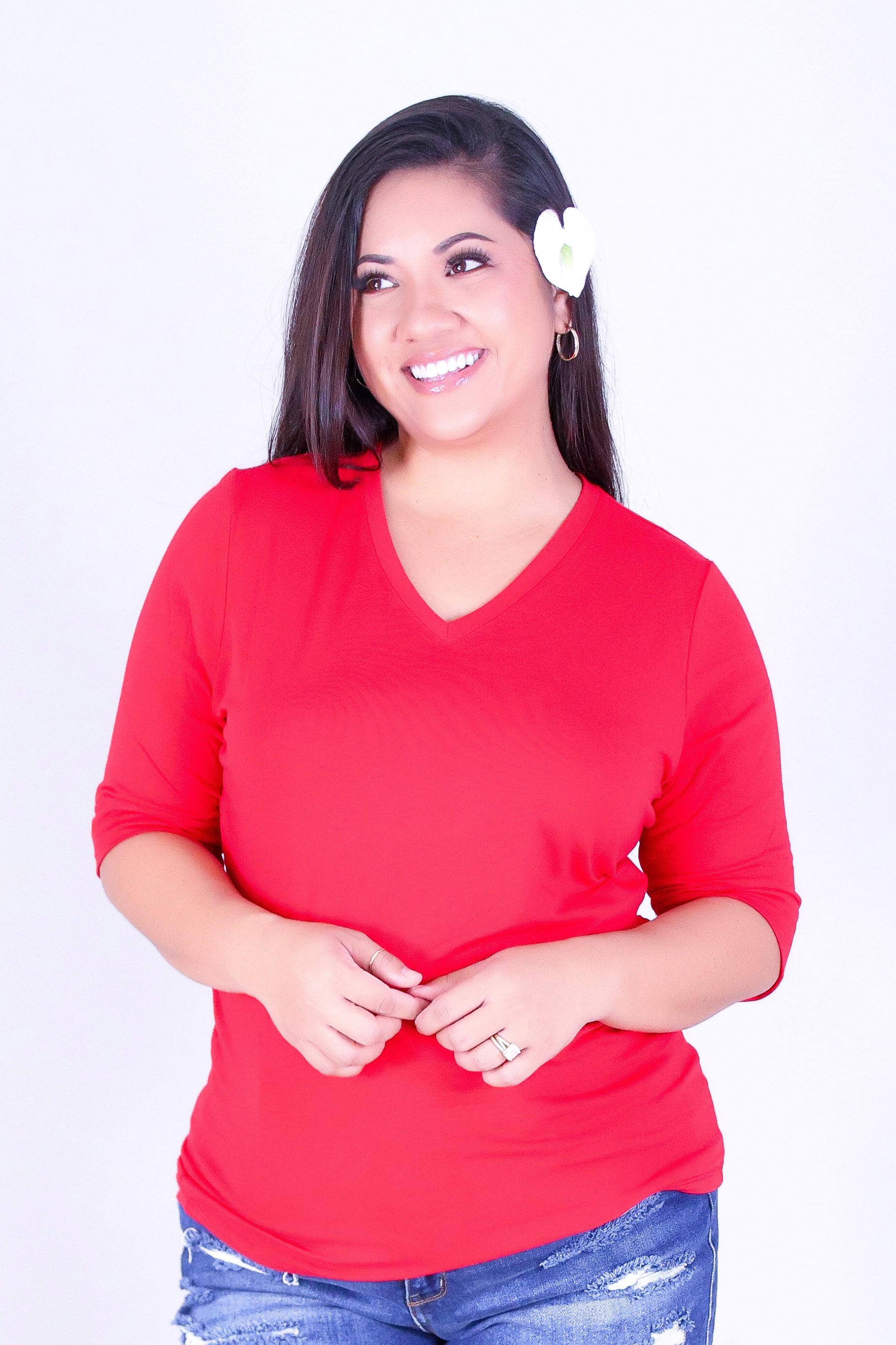 VICTORIA TEE is available in color RED and in size 1X, 2X, 3X.