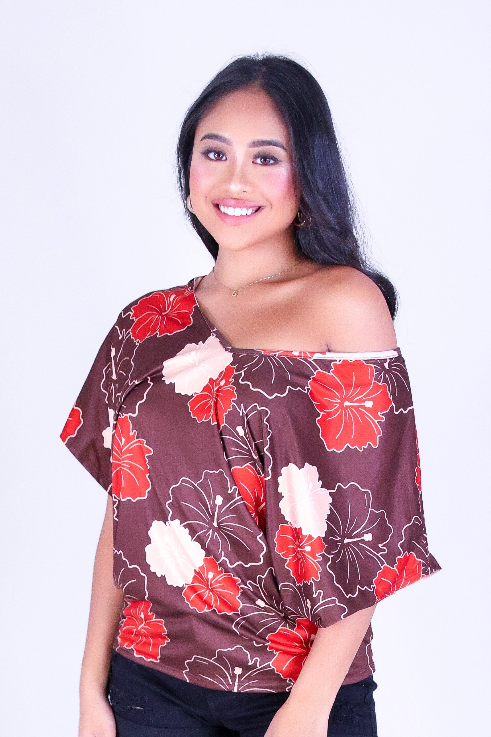 MULTI ALOALO DOLMAN TOP is available in color BROWN and in size SMALL, MED, LARGE, XL.