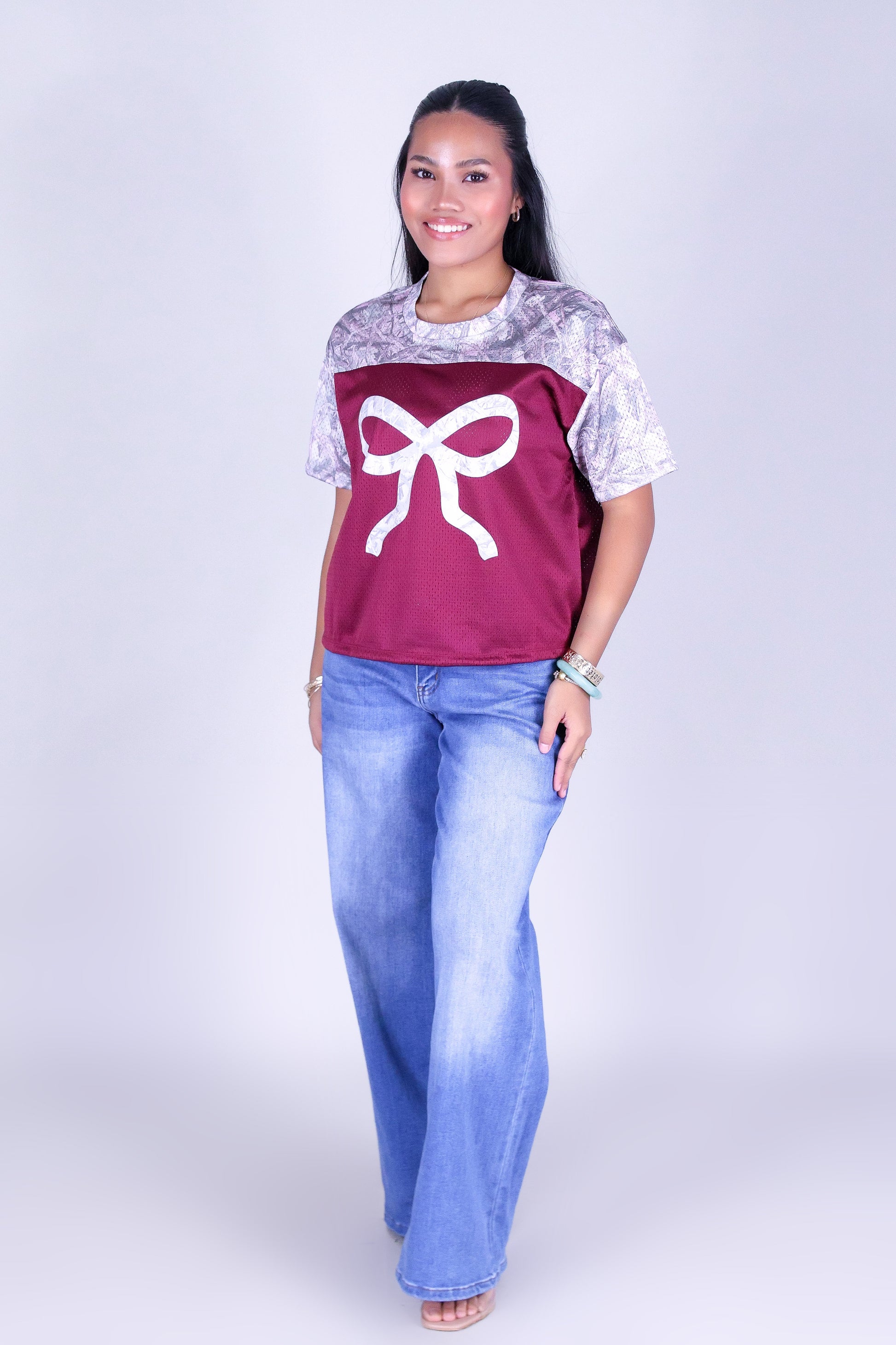 ENDZONE HUNTING CAMO JERSEY is available in color WINE and in size SMALL, MED, LARGE, XL.