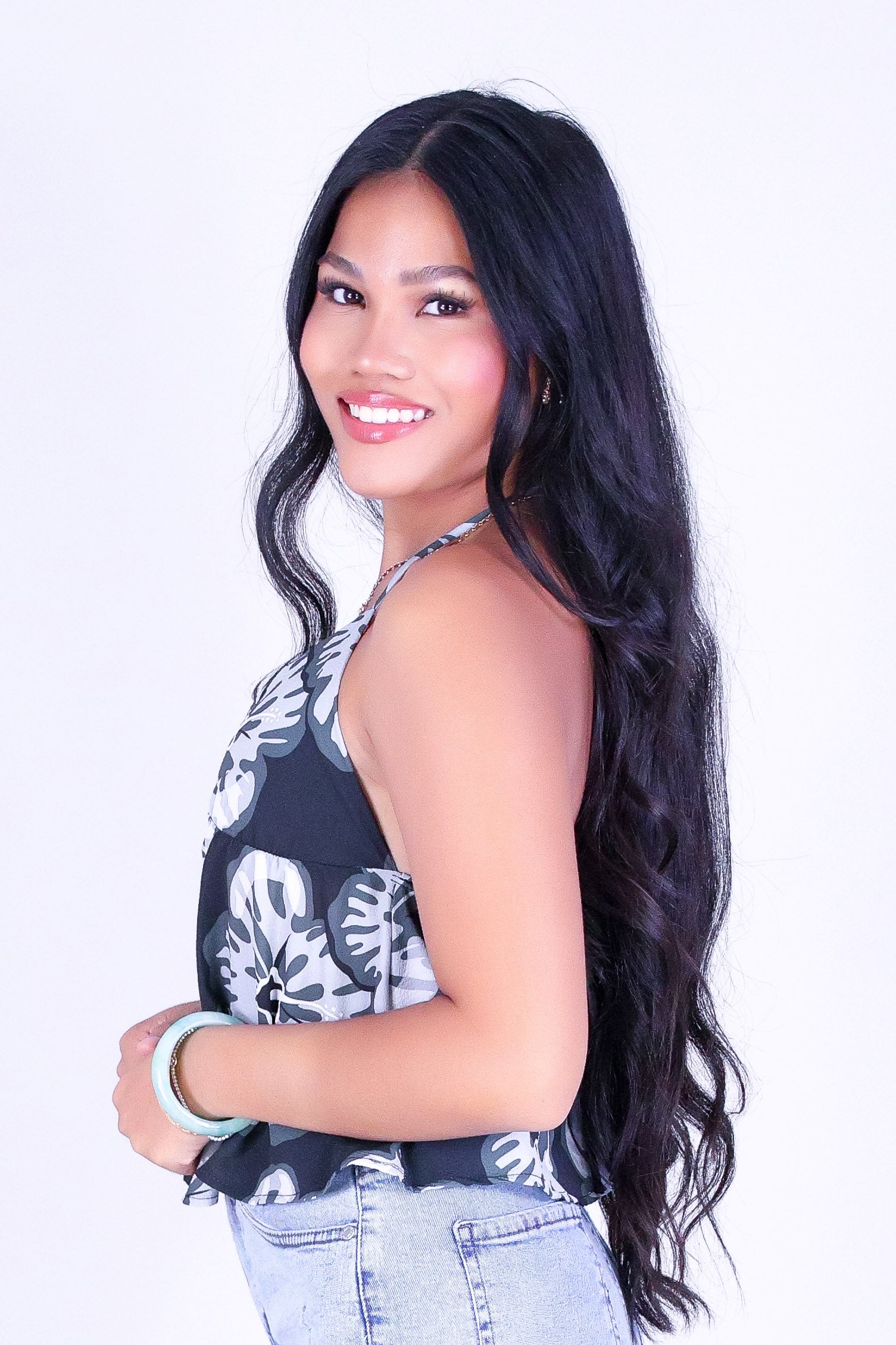 WATERCOLOR HIBISCUS HALTER TOP