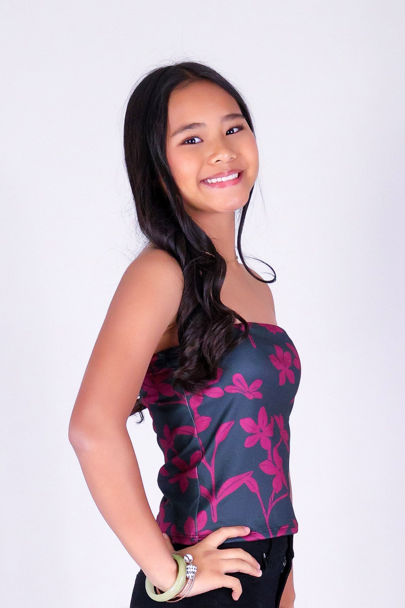 JASMINE GARDENIA TUBE TOP | KIDS SIZE 2-16 is available in color BLACK and in size 2T, 3T, 4T, 5, 6X, 8, 10, 14, 16.