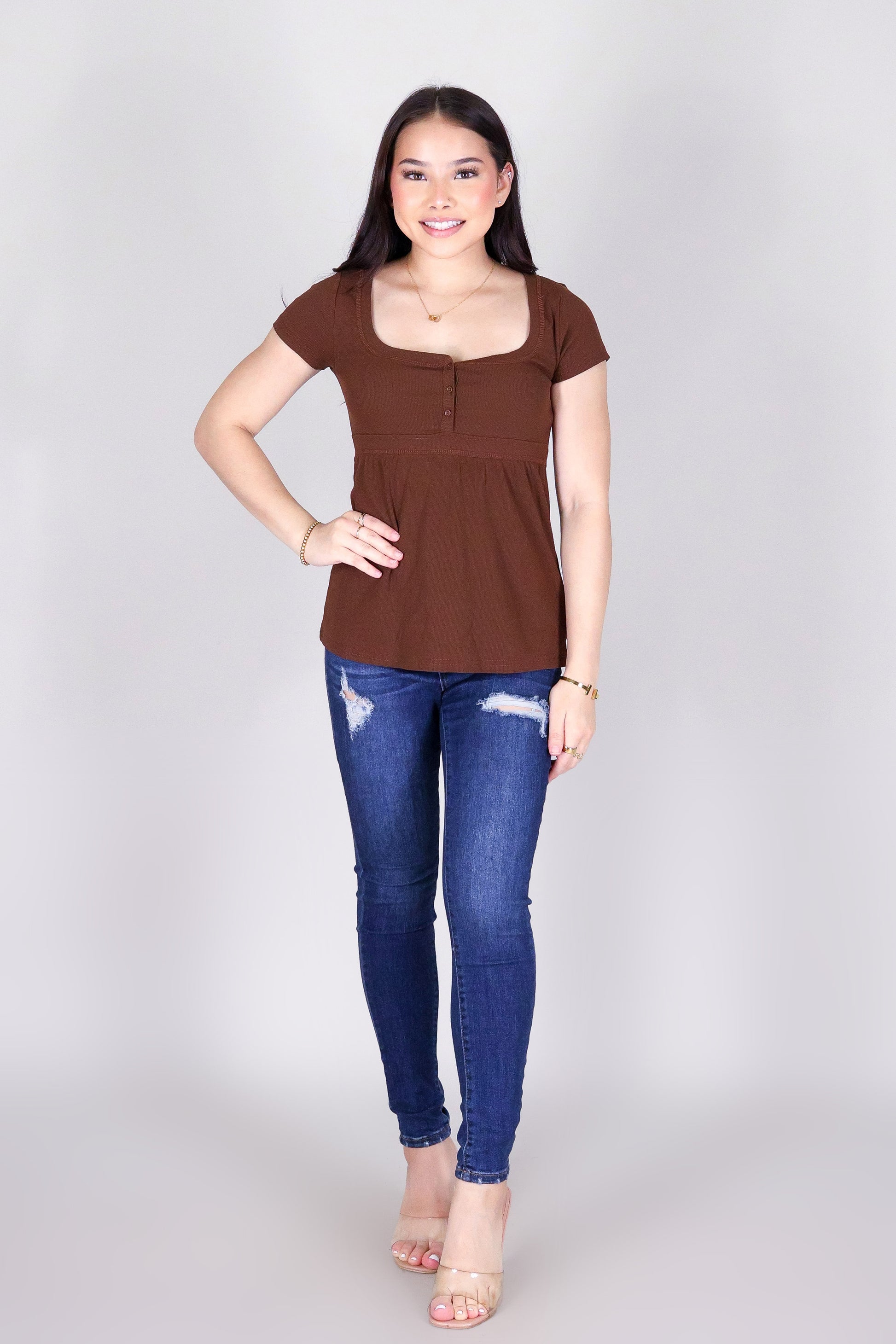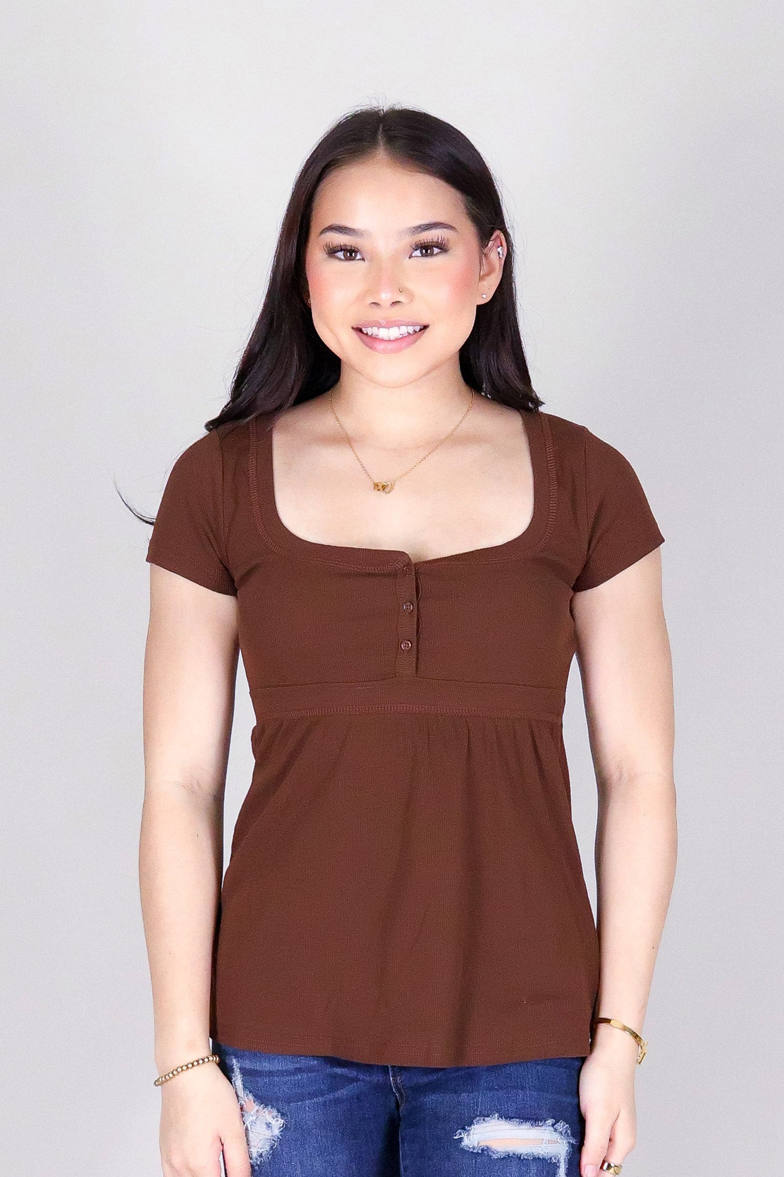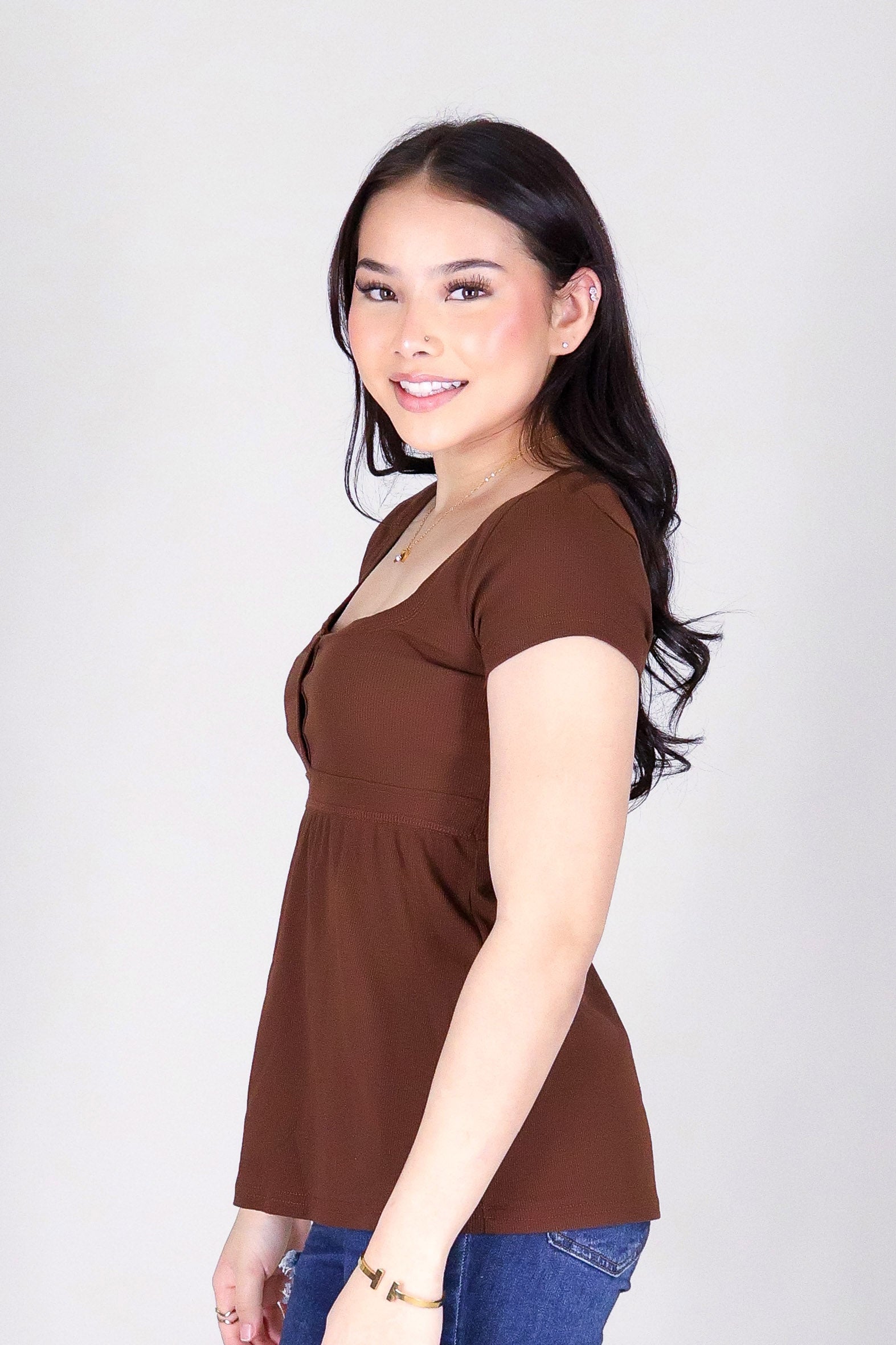 MAKE IT HAPPEN TOP is available in color BROWN and in size SMALL, MED, LARGE, XL.