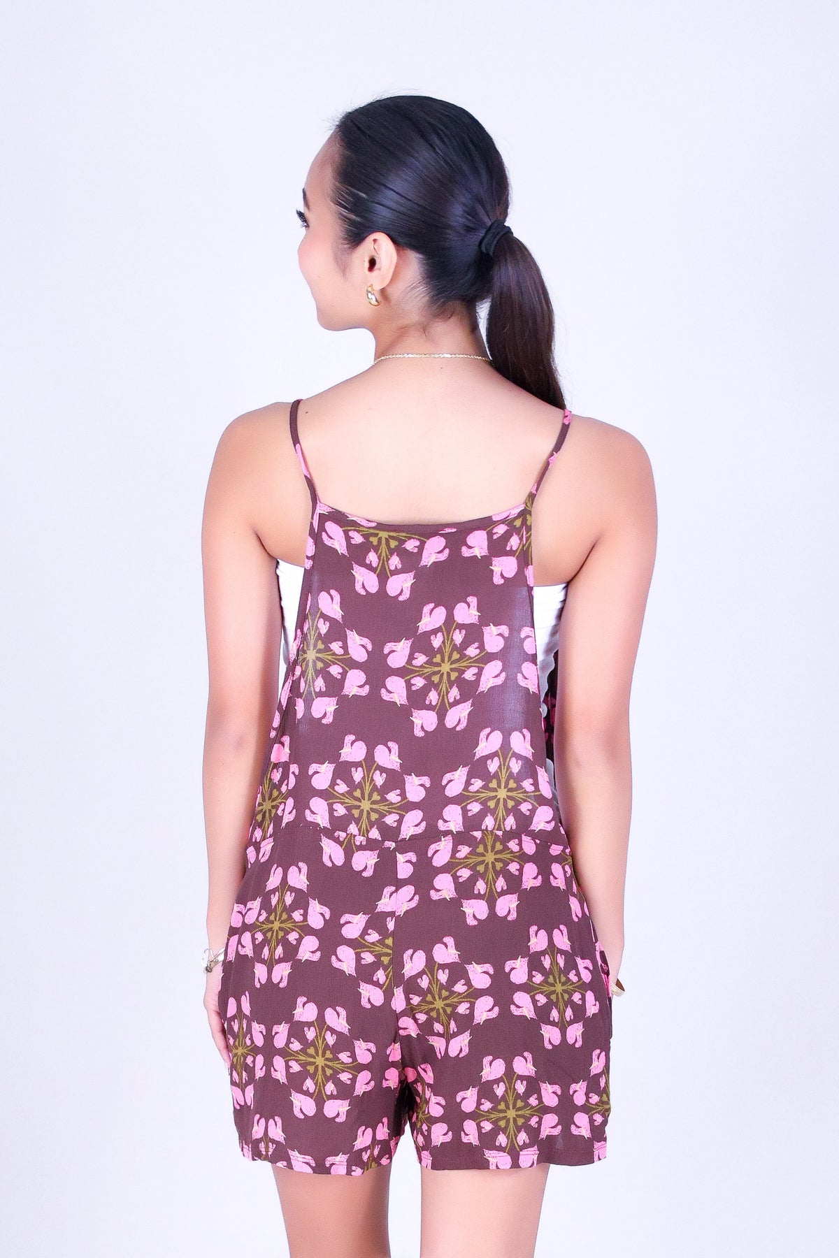 ANHTURIUM QUILT OVERALL ROMPER is available in color BROWN and in size SMALL, MED, LARGE, XL.