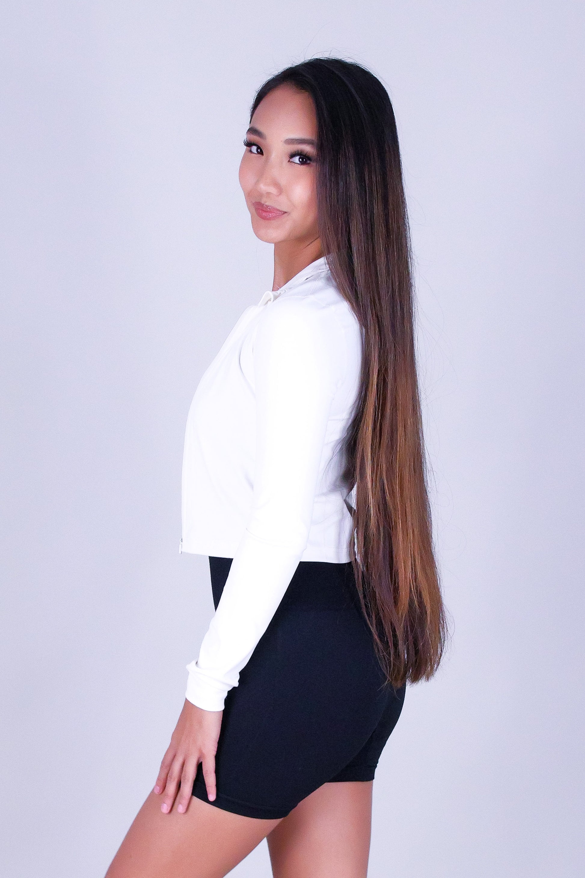 SWEET LAYER ACTIVE JACKET is available in color IVORY and in size SMALL, MED, LARGE.