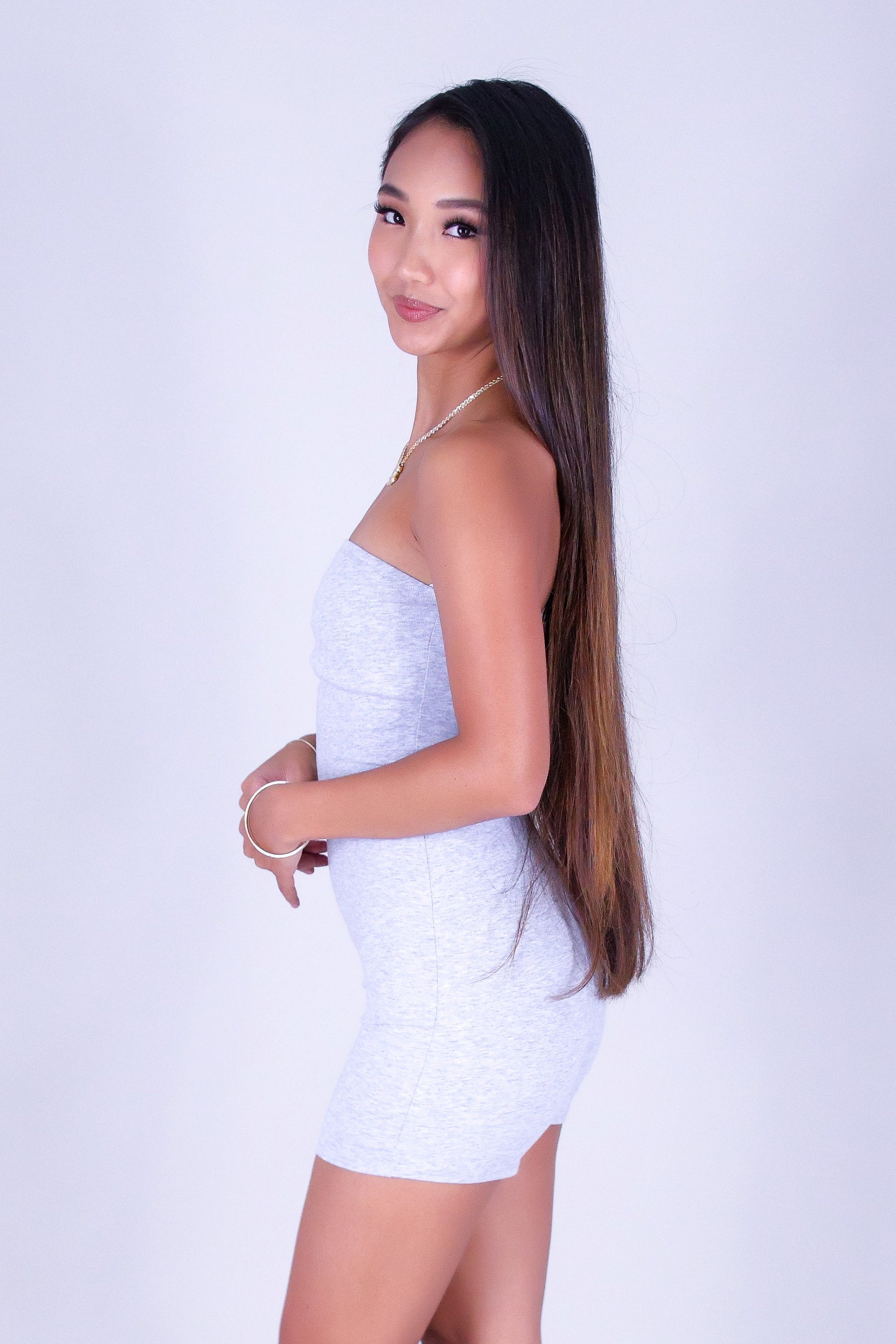 BODY CRUSH TUBE CATSUIT ROMPER is available in color H.GREY and in size SMALL, MED, LARGE.