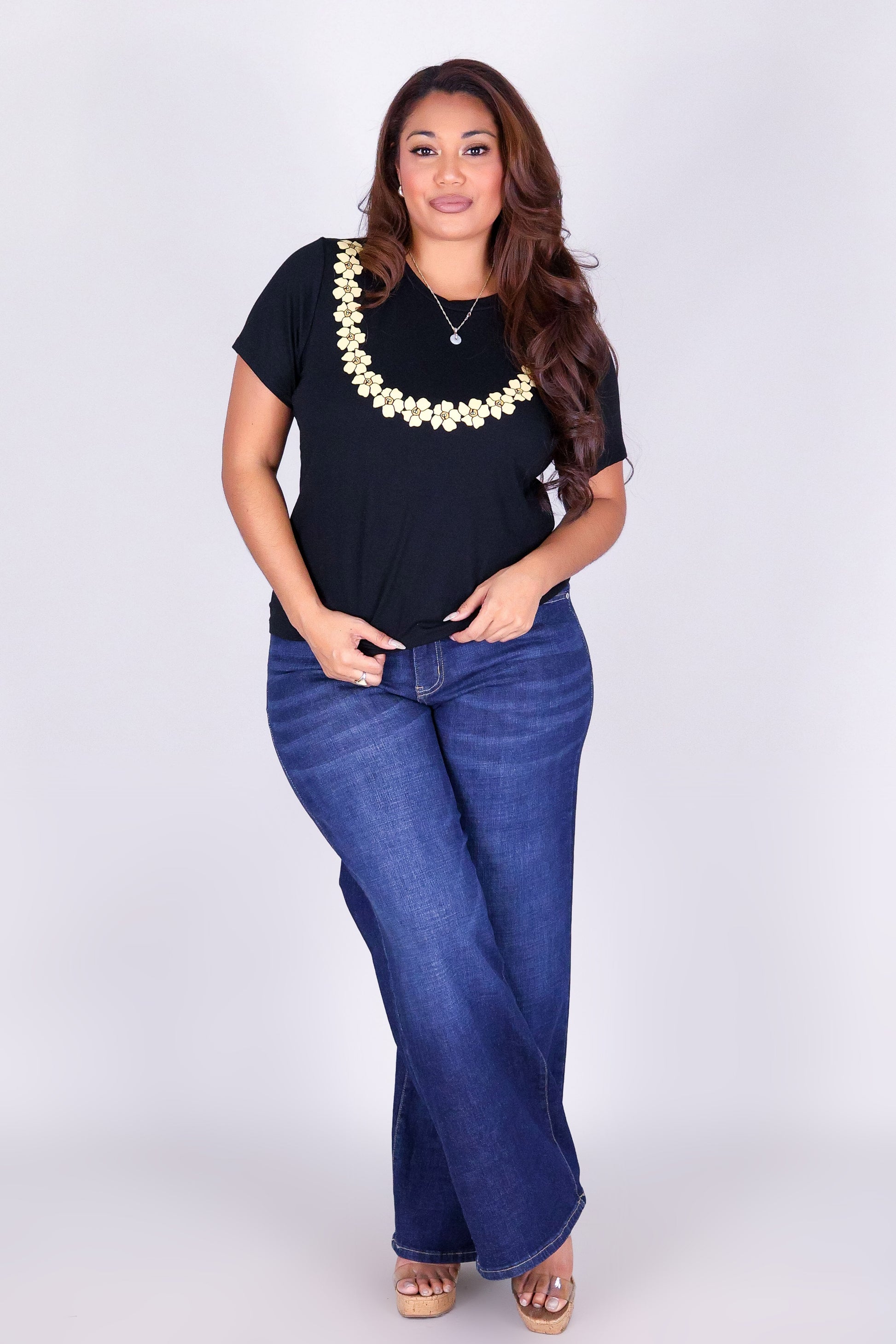 PUAKENIKENI LEI TEE is available in color BLACK and in size 1X, 2X, 3X.