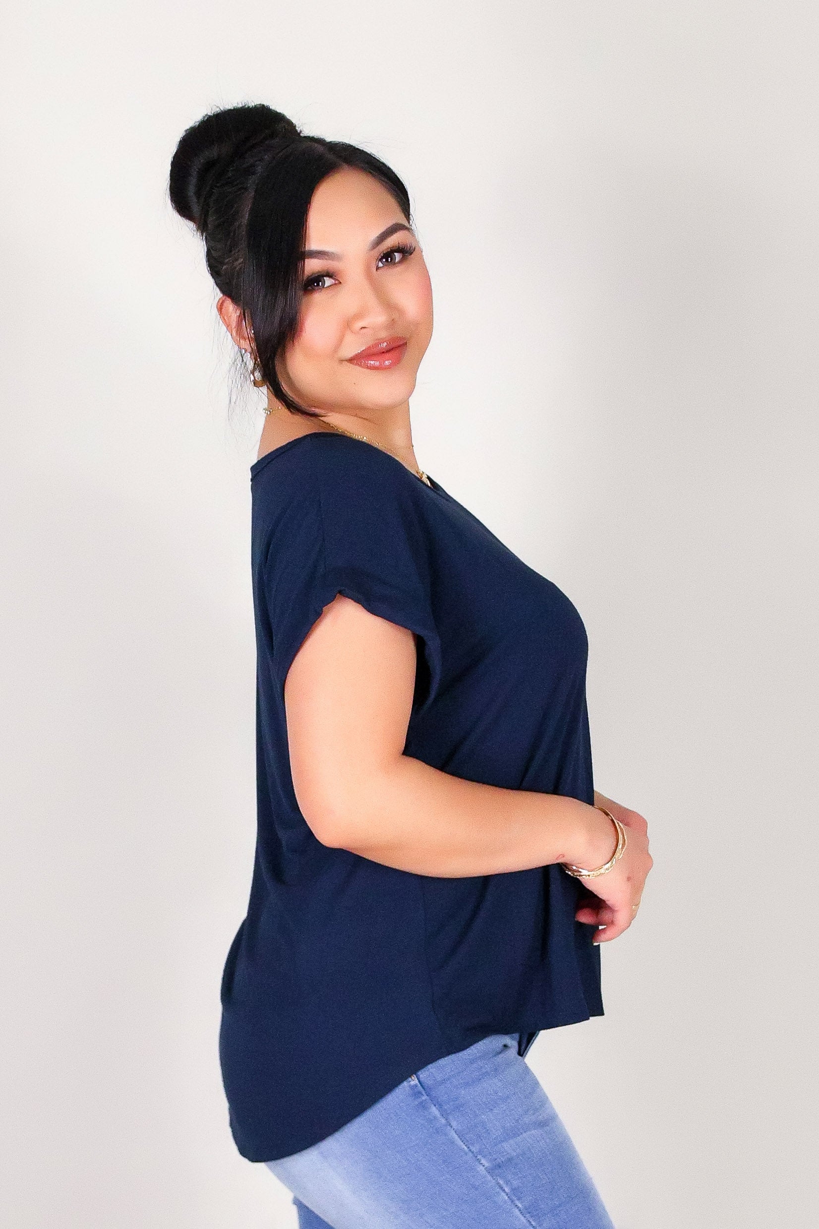 MODERN MUSE TEE is available in color NAVY and in size SMALL, MED, LARGE.