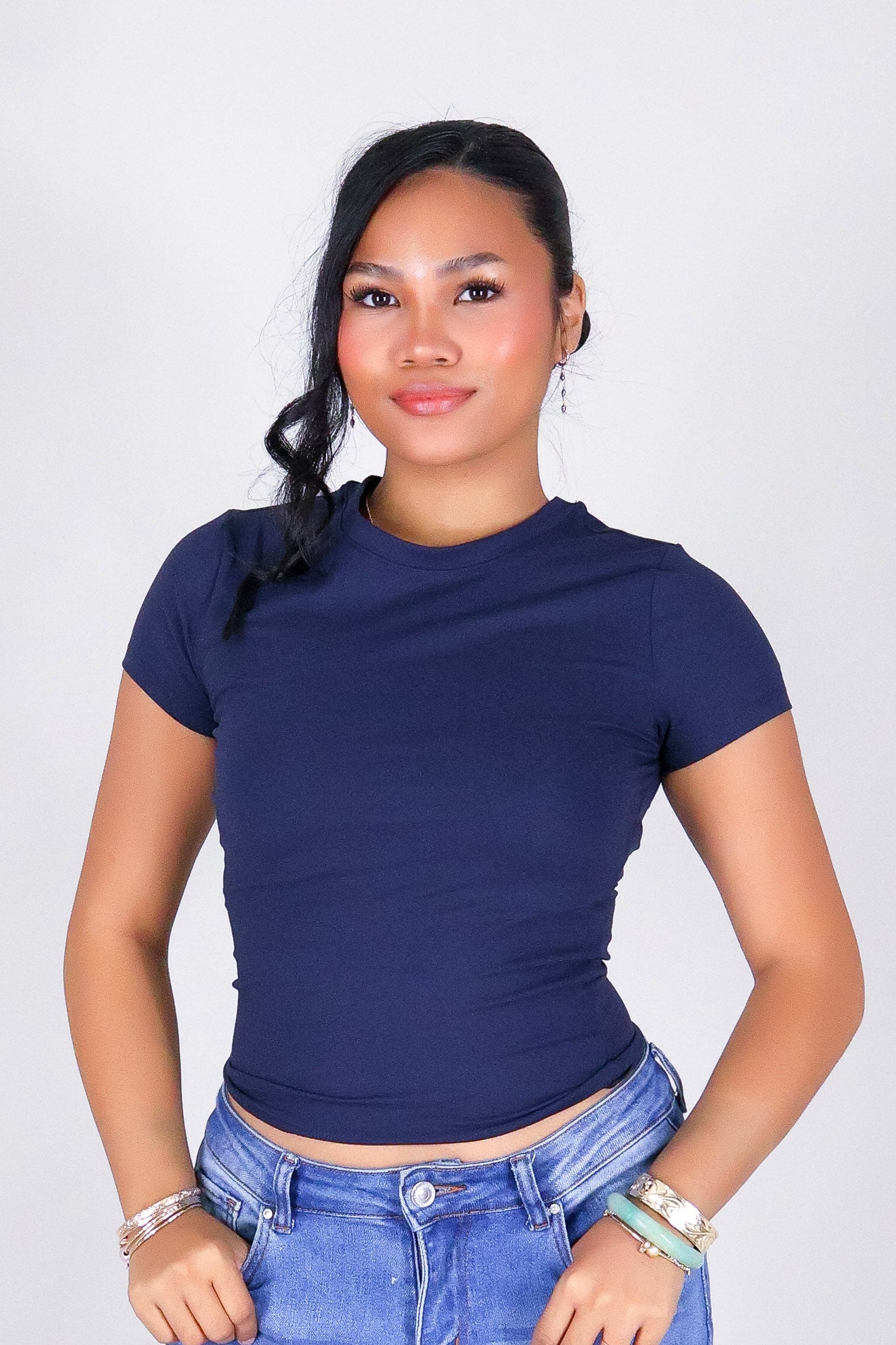 CLEAN CUT TEE is available in color NAVY and in size SMALL, MED, LARGE.