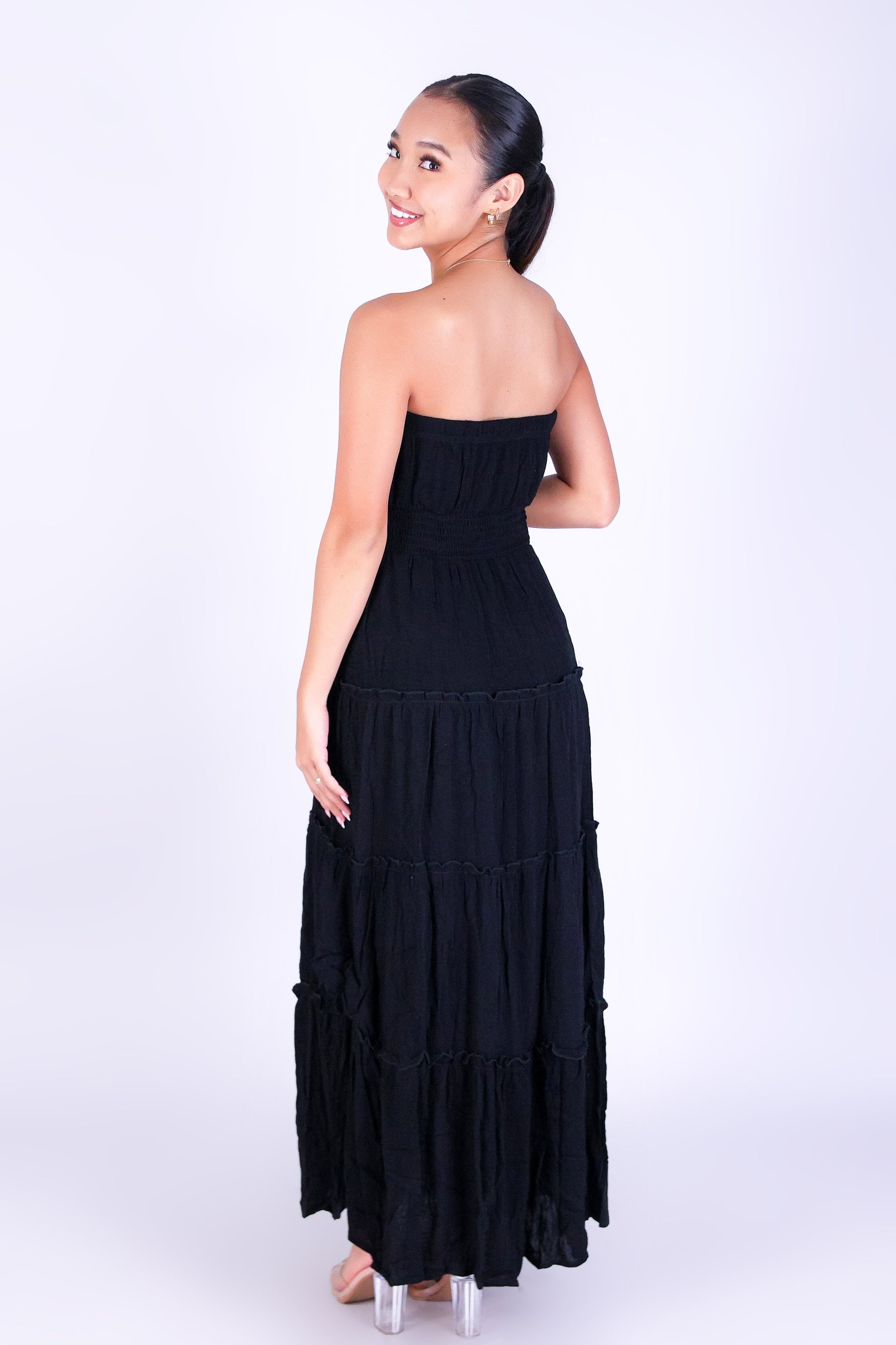 DAYDREAM GLOW TUBE DRESS is available in color BLACK and in size SMALL, MED, LARGE.