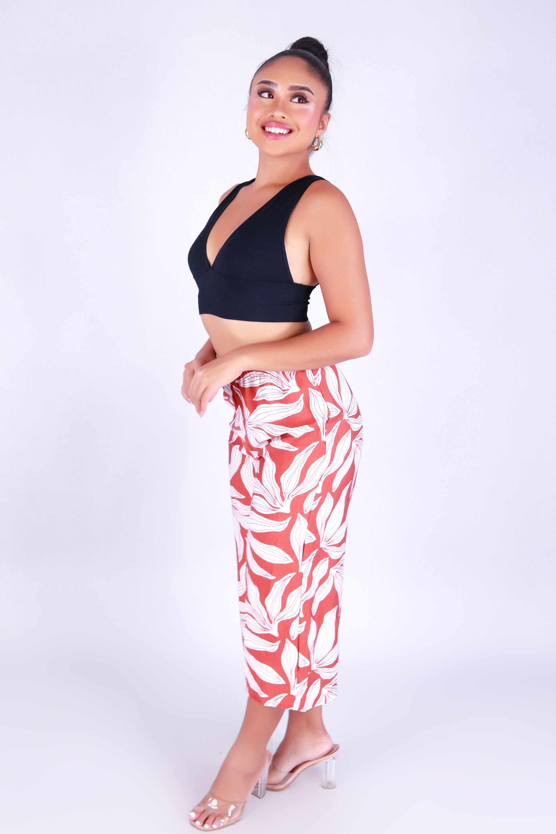 BLOOMED TO PERFECTION CAPRI'S is available in color RUST and in size SMALL, MED, LARGE.