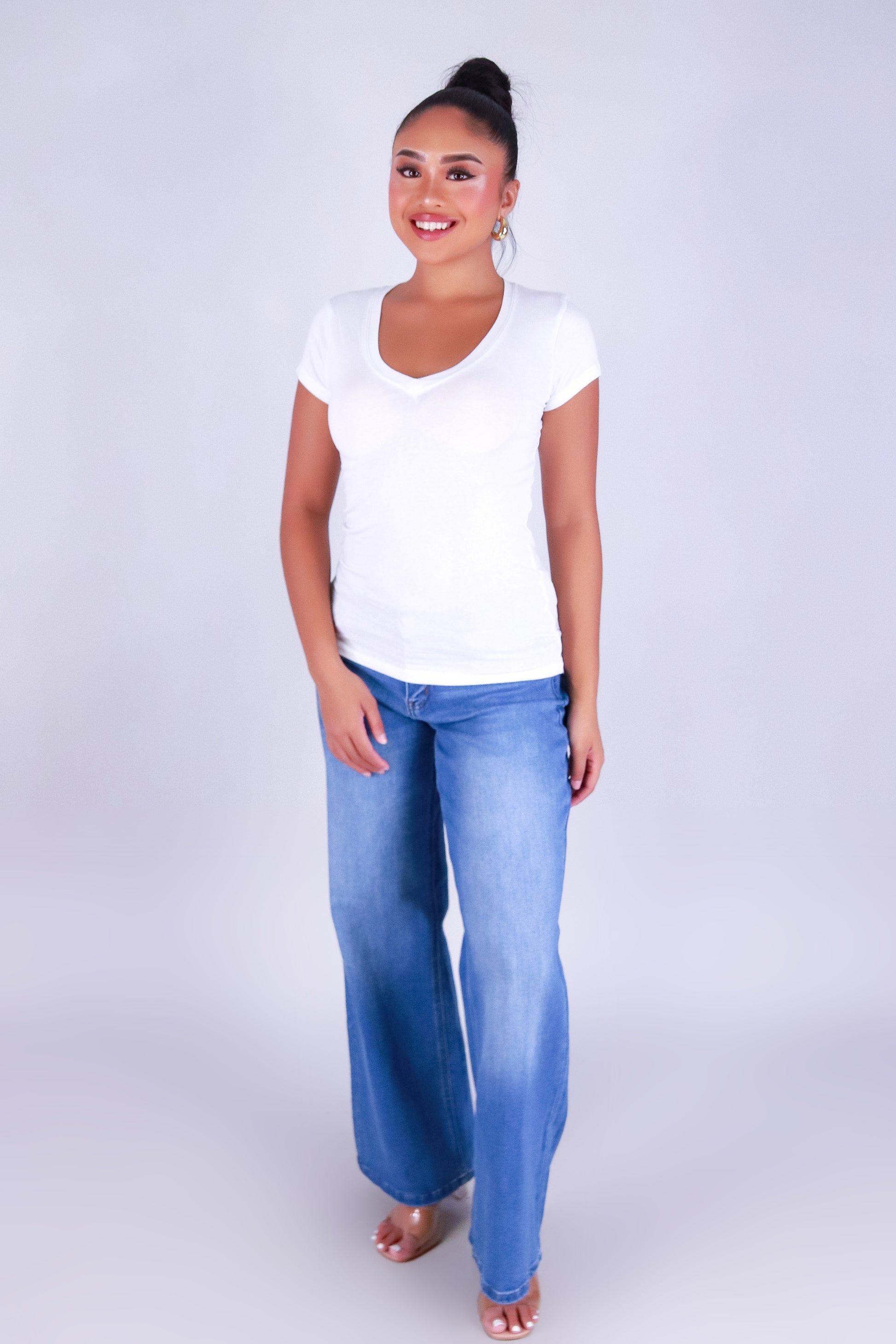 GO-TO BASIC TEE is available in color WHITE and in size SMALL, MED, LARGE.