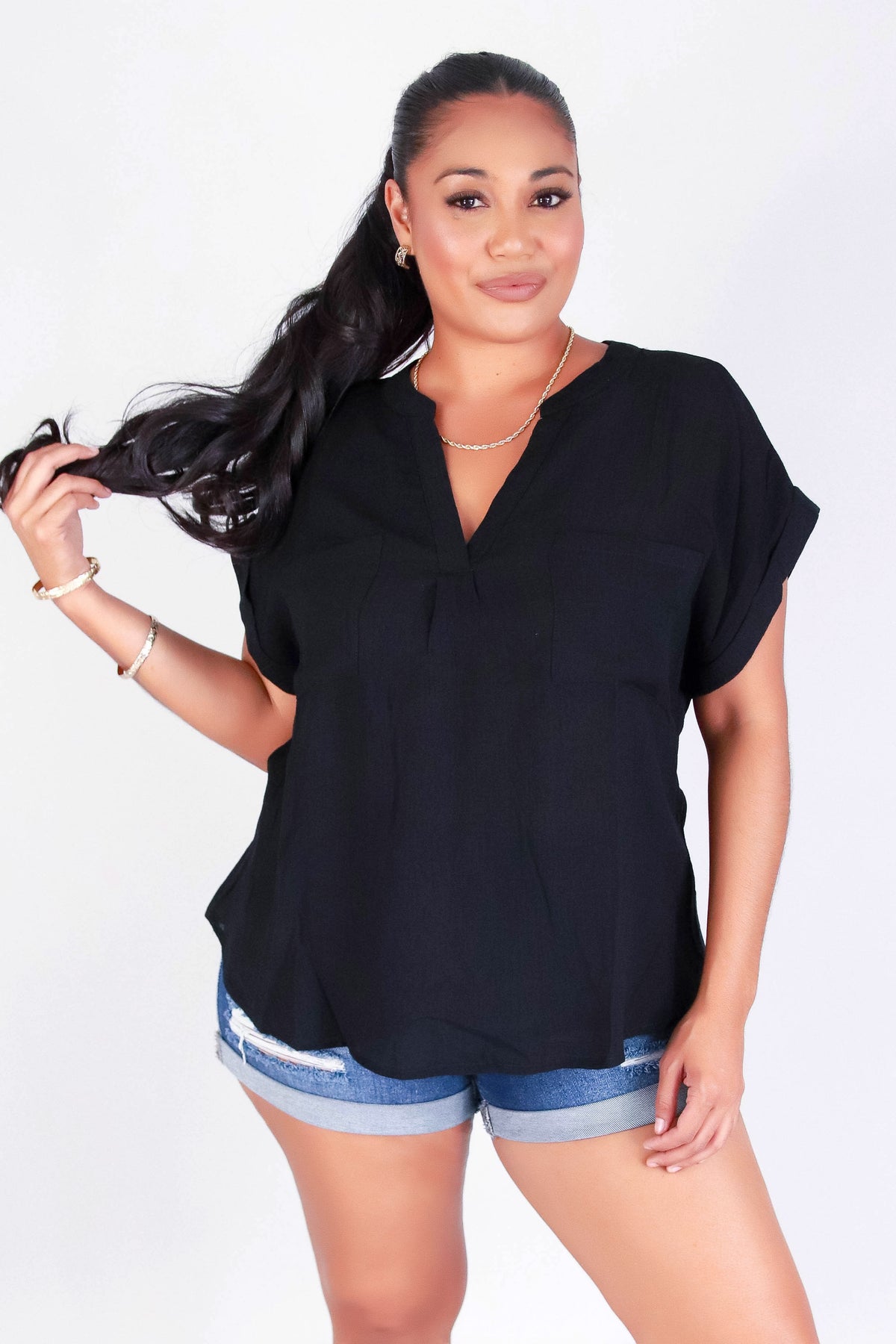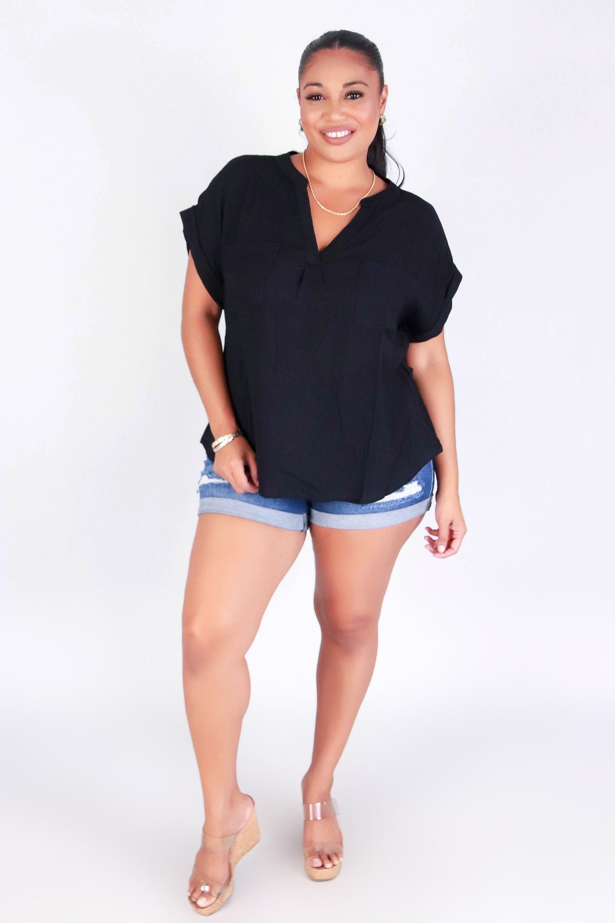 BACK AGAIN TOP is available in color BLACK and in size 1X, 2X, 3X.