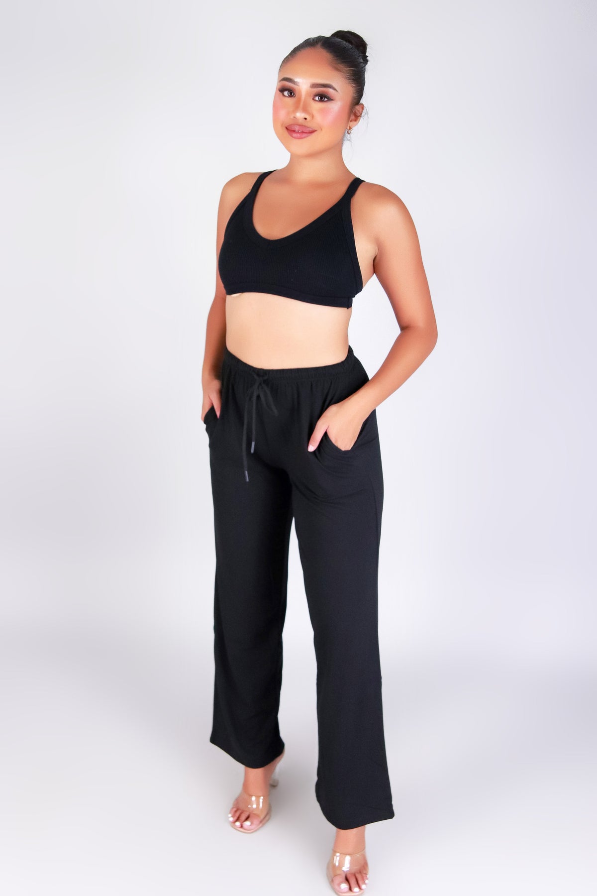 ACTIVE ESSENTIAL PANTS is available in color BLACK and in size SMALL, MED, LARGE.