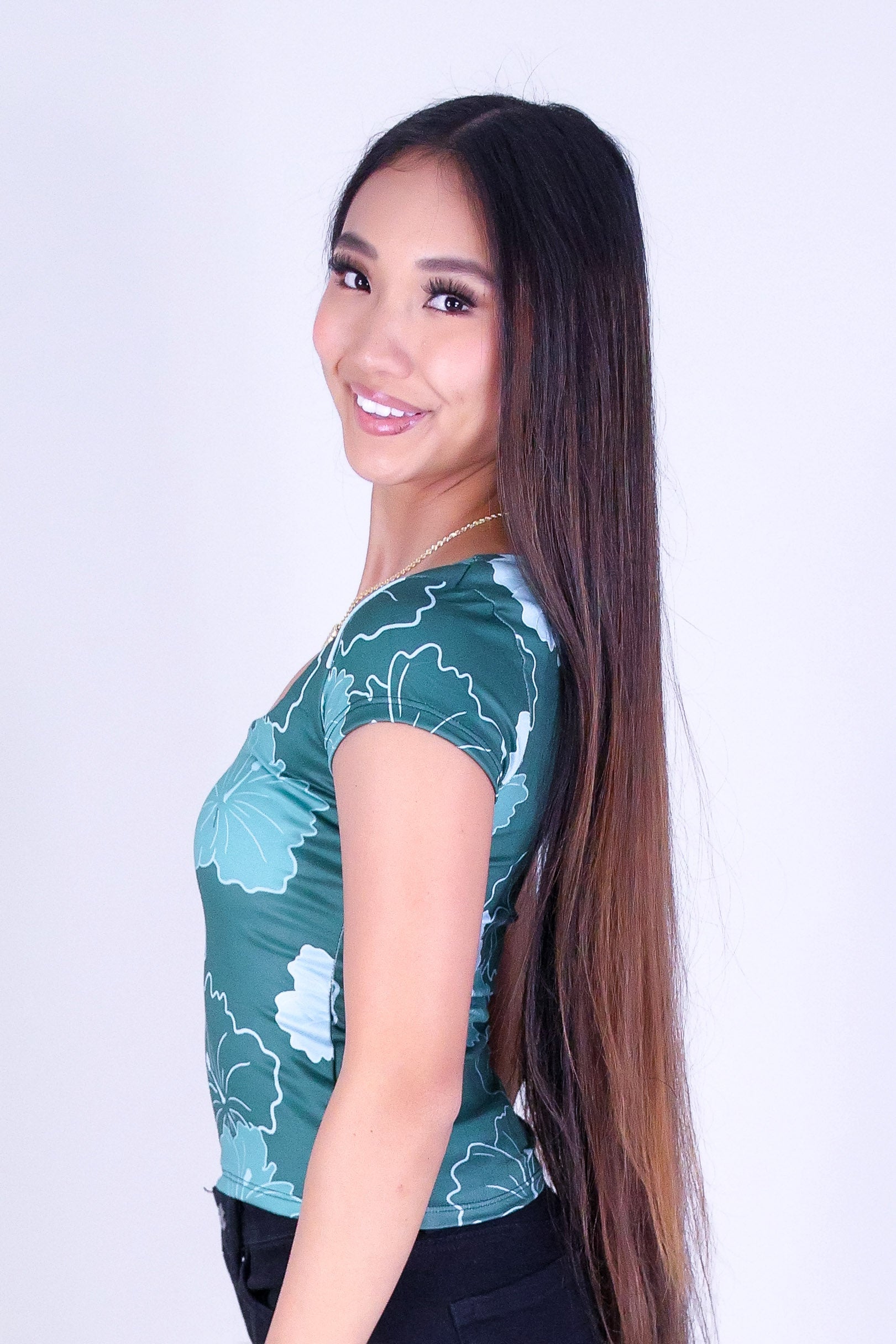 MULTI ALOALO SQUARE NECK TOP is available in color GREEN and in size SMALL, MED, LARGE.