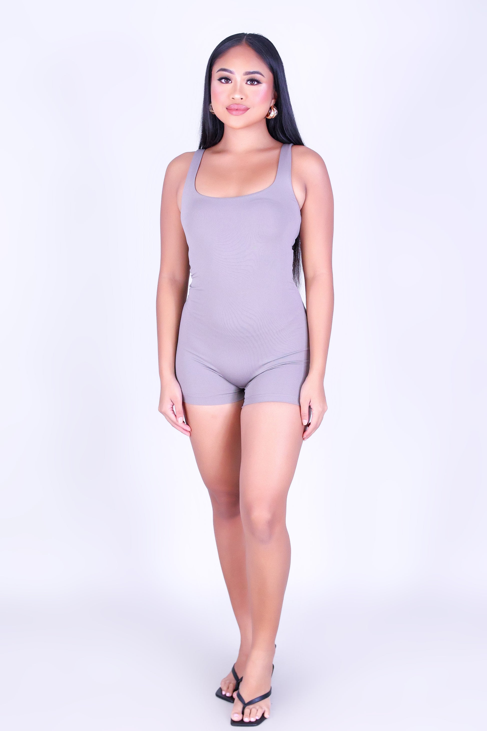 SCULPT ME CATSUIT ROMPER is available in color ASH and in size S/M, M/L.