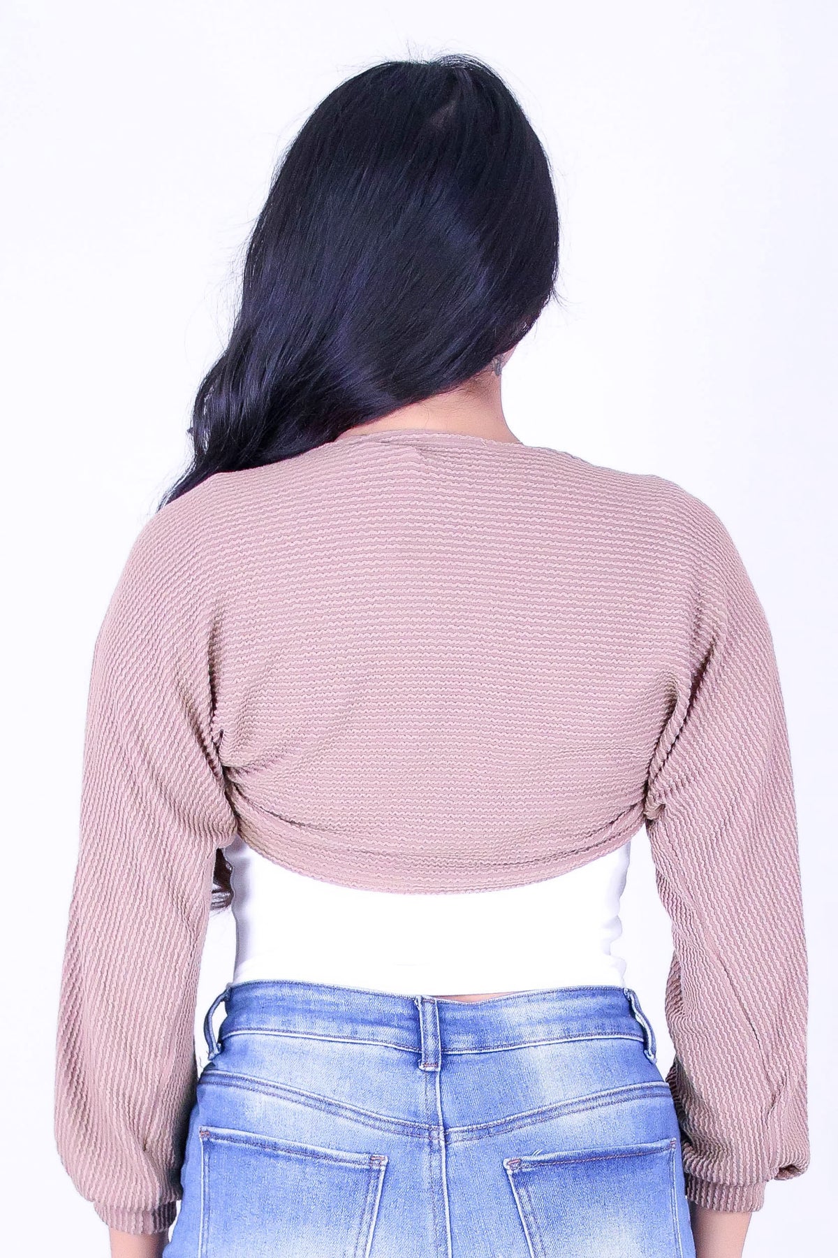 ALL ABOUT ME BOLERO is available in color MOCHA and in size SMALL, MED, LARGE.
